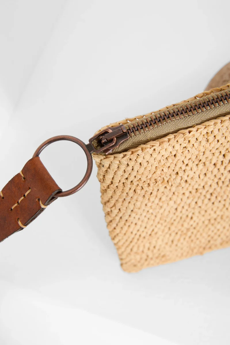 • Matières : 100% en Raphia naturel, cette pochette doublée en coton bio allie souplesse et solidité d’une matière naturelle et durable. La dragonne est en cuir de zébu tanné selon un procédé végétal.