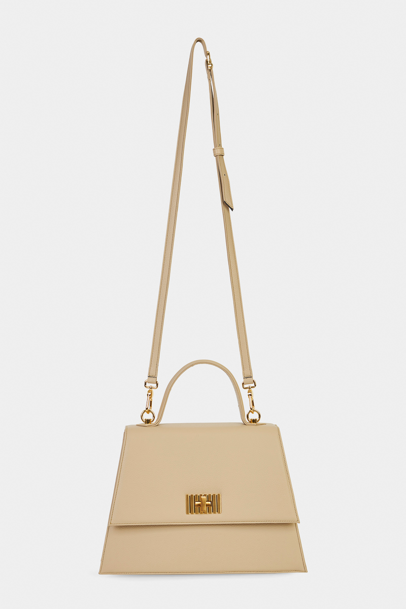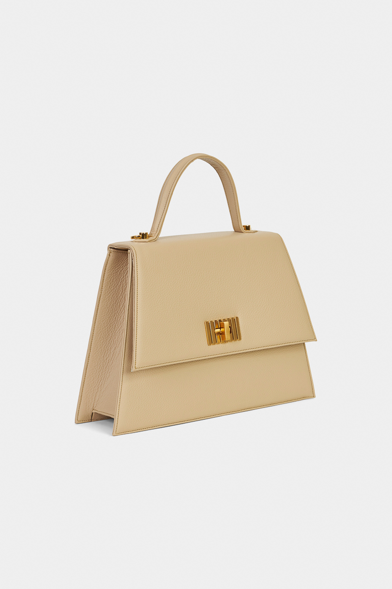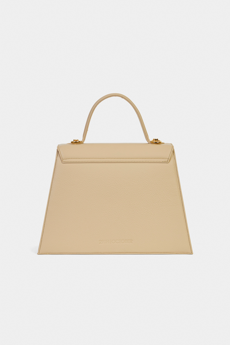 Son design est sublimé par un fermoir unique en laiton brossé, dont les lignes délicates et la finition mate apportent une touche de sophistication discrète. Polyvalent, il se porte aussi bien à la main avec sa poignée élégante qu’à l’épaule ou en crossbody grâce à sa bandoulière amovible, s’adaptant à chaque moment de votre journée. Ce sac n’est pas qu’un accessoire, c’est une pièce de collection.