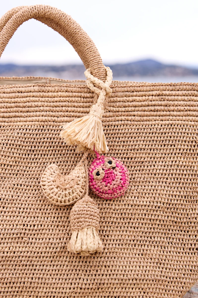• Caractéristiques : Attache en raphia tressé pour fixation facile sur l’anse de votre sac