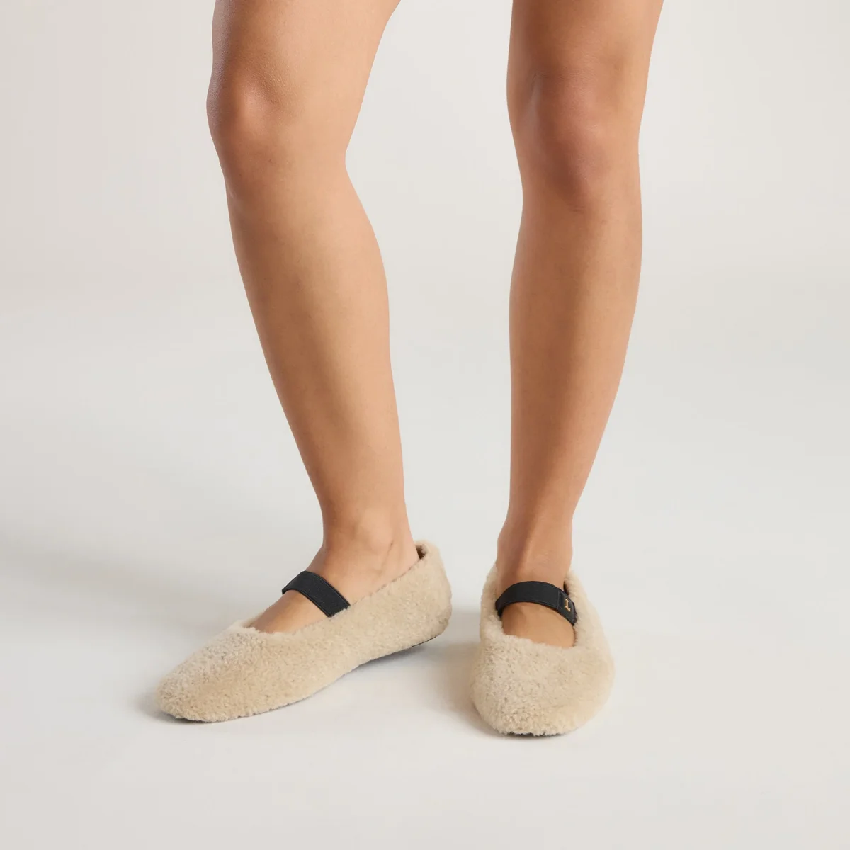 Construction ballerine Décolleté moderne à bout carré souple Tige entièrement en shearling doux Bride élastique noire contrastante avec épingle logo « L » Première assortie en shearling doux avec étiquette en coton tissé avec logo Doublure en polaire ton sur ton Semelle classique de ballerine en noir contrastant avec texture antidérapante Logo gravé sur la […]