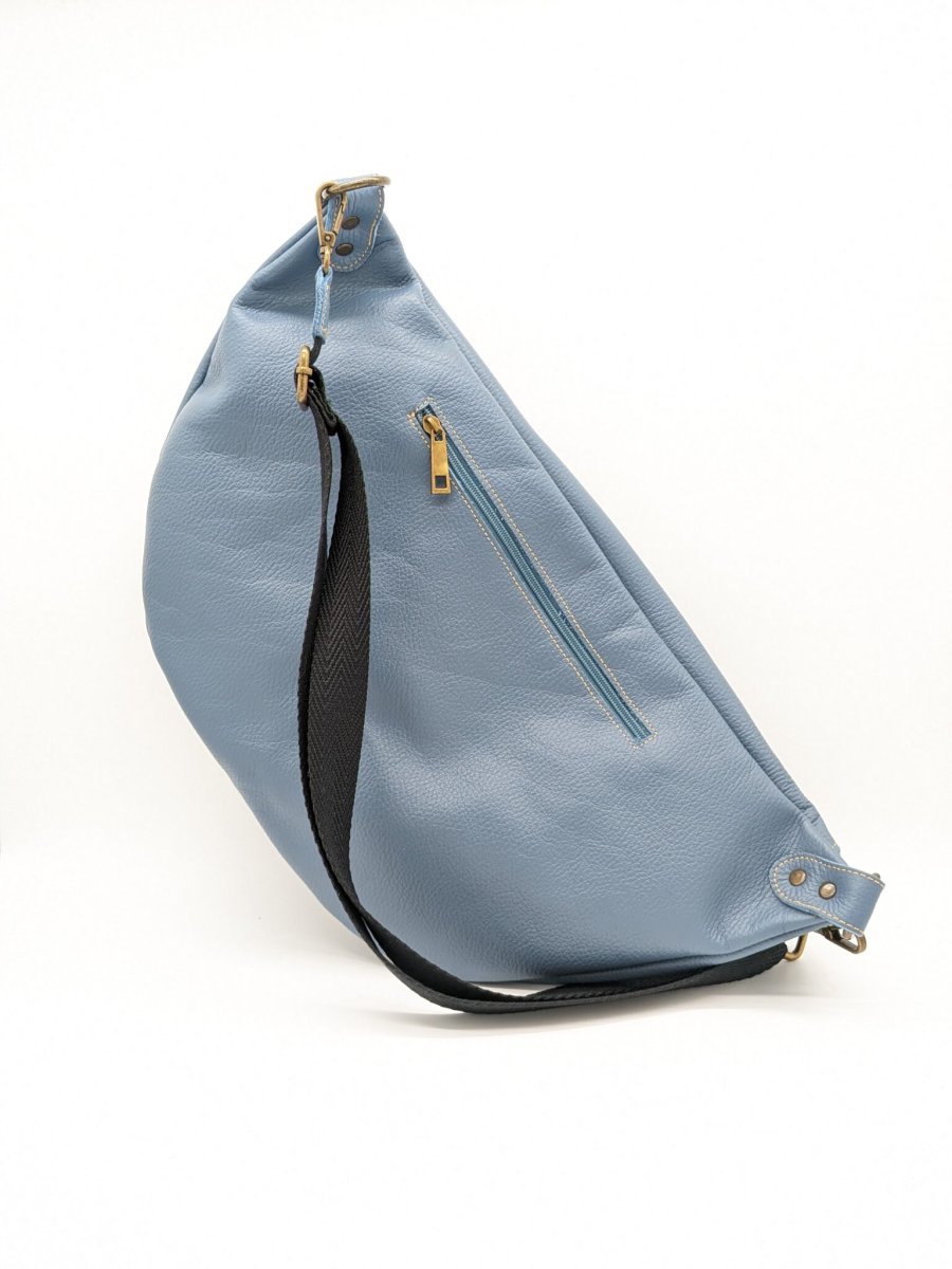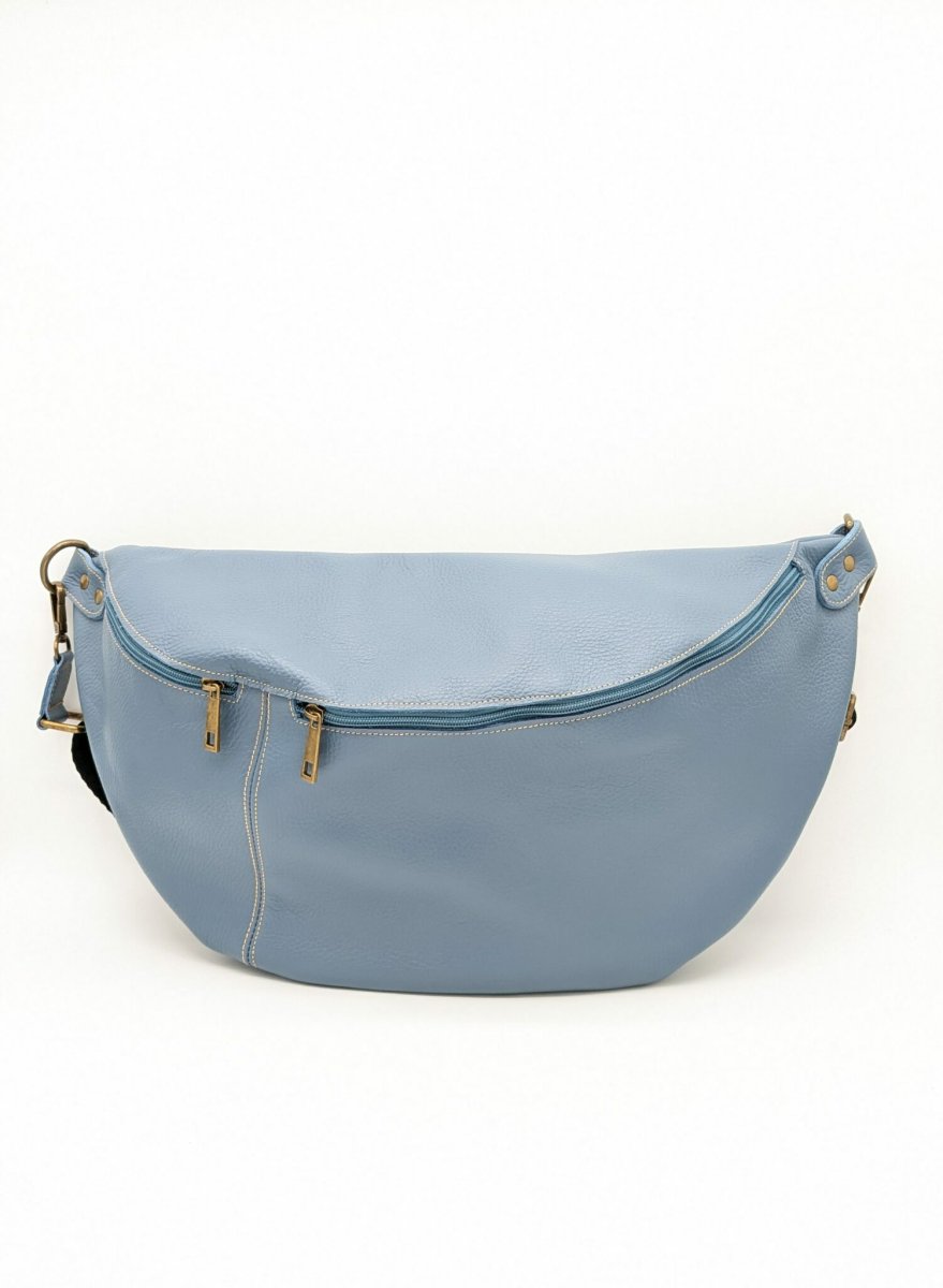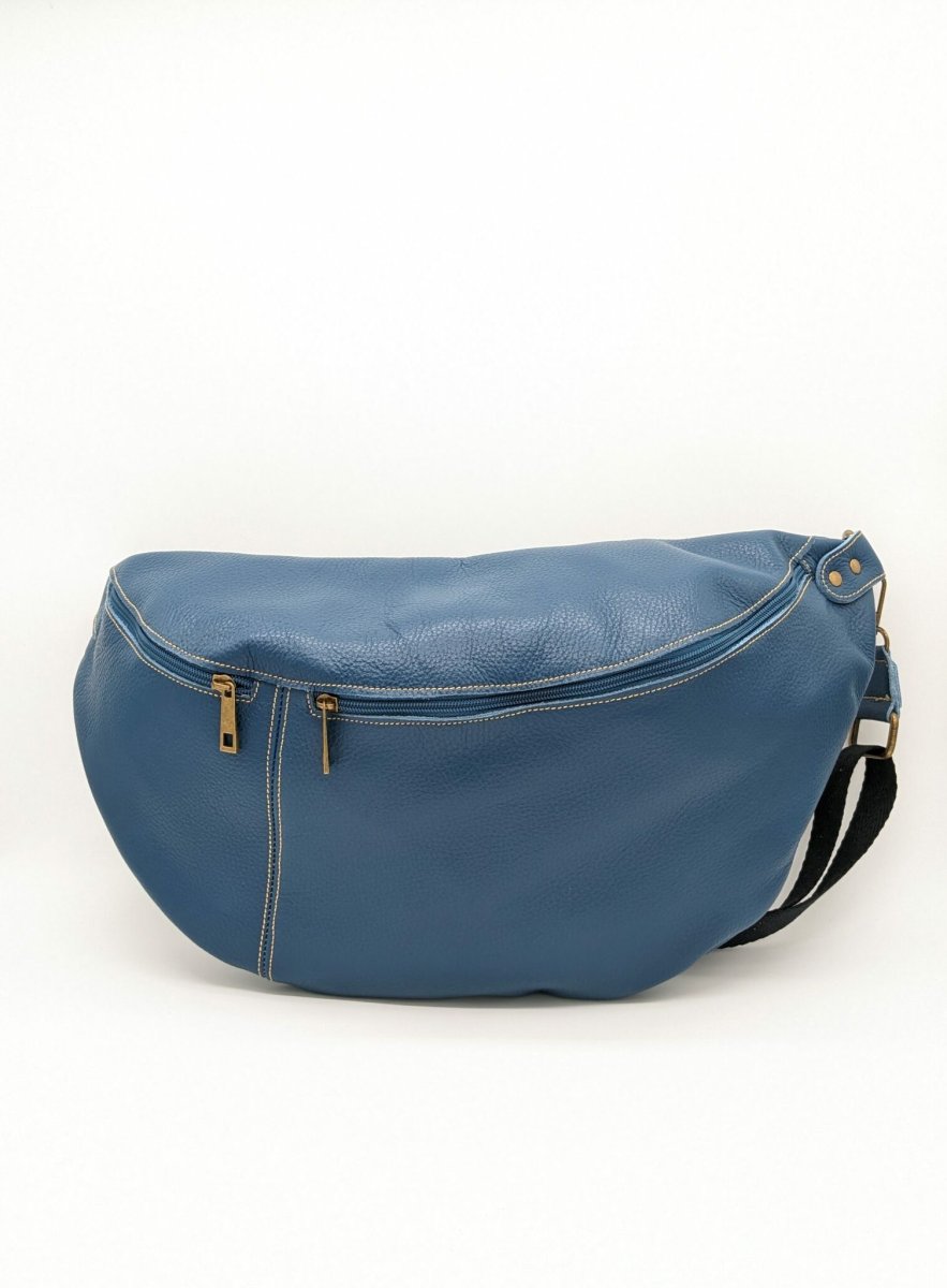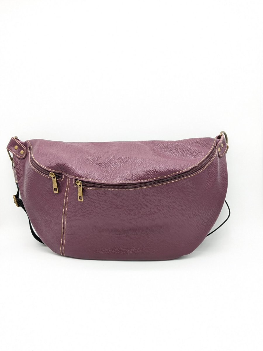 Gardez la Banane XXL ! – Sac bandoulière en cuir grainé de vachette – Bandoulière réglable – Une grande et une petite poche sur le devant – Poche zippée derrière le sac – Doublure tissu Dimensions (en cm) : 40 x 25 x 15 Fabrication artisanale Délai de livraison environ 10 jours