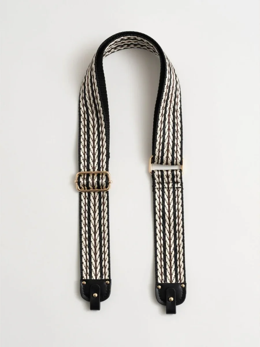 Cette bandoulière convient à tout les sacs qui ont une boucle carré pour rester élégant même dans le détail DESCRIPTION : Large bandoulière ajustable & amovible DIMENSION : 121 x 4 COMPOSITION : Matière : 43%Coton 47% polyester 10% polyuréthane Doublure : 100% polyester recyclé