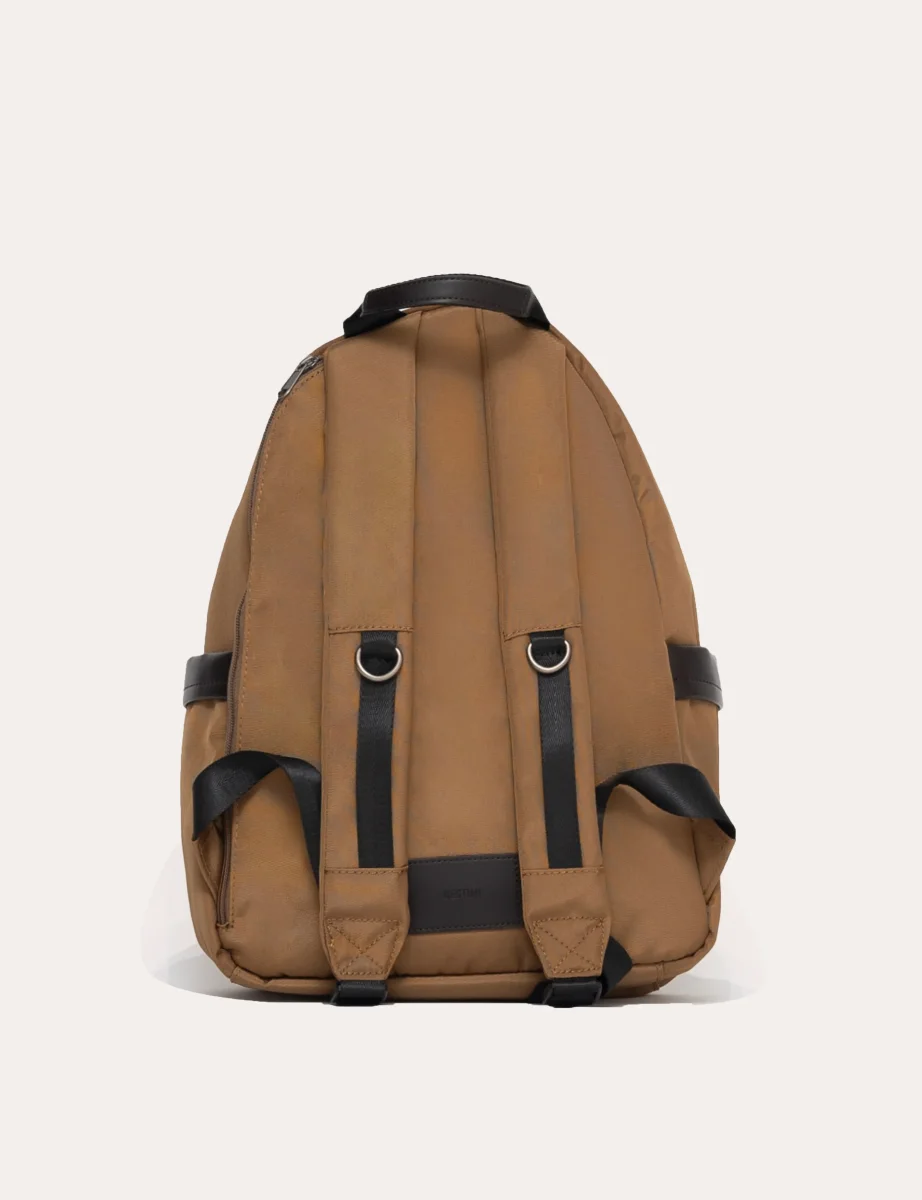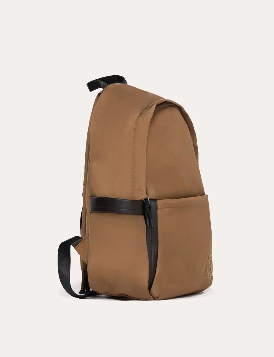 Un sac à dos au format classique, structuré par une ligne arrondie et une construction souple en nylon déperlant.