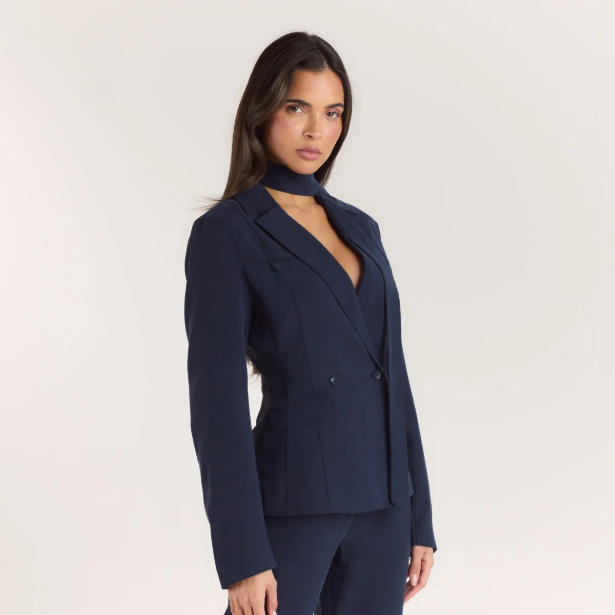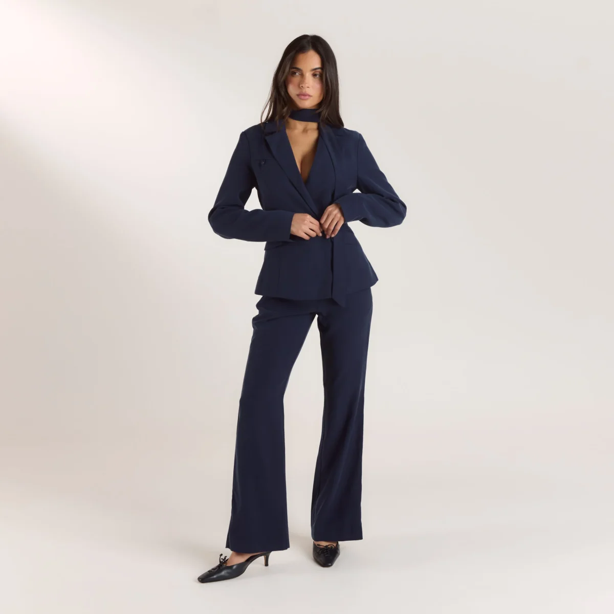 Ce blazer est la pièce la plus polyvalente de votre garde-robe – grâce à sa cravate amovible, vous pouvez créer und multitude de looks. Portez-la comme ceinture, cravatte, ou simplement sur l’épaule – ce blazer se marie parfaitement avec le pantalon droit style ’90s pour un look coordonné et chic.