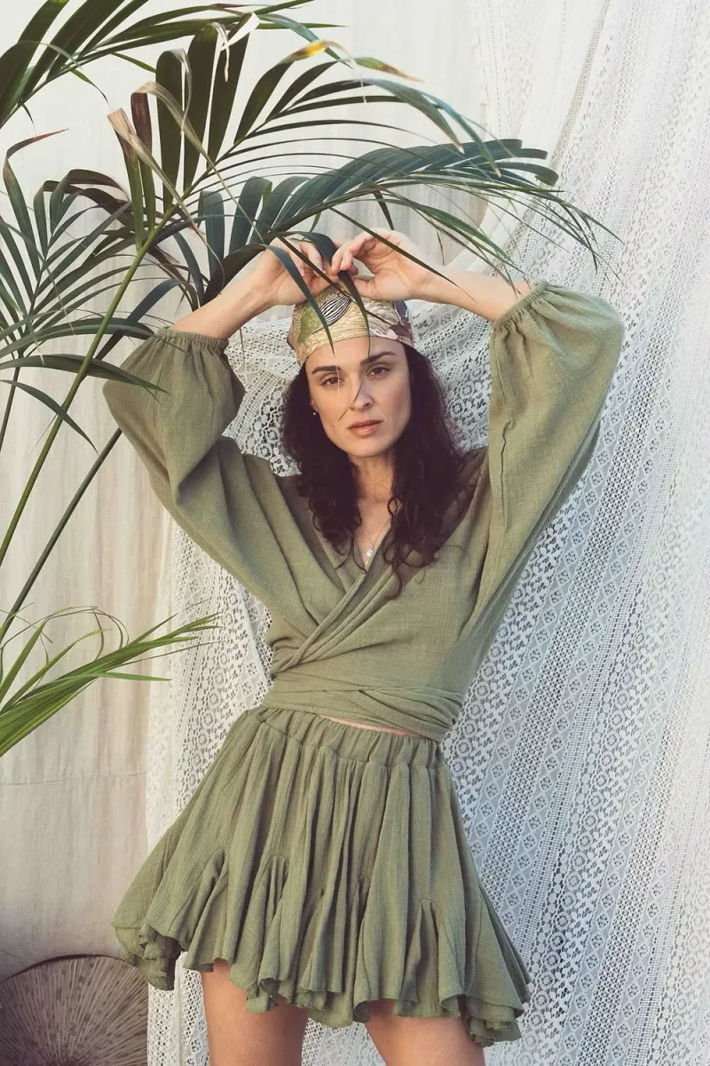 Pièce essentielle du vestiaire Maison Blonde The Label, la blouse Ibiza séduit par sa coupe fluide et ajustable. Grâce à ses liens, elle se module selon vos envies : nouée pour une touche sensuelle ou portée en cache-cœur pour plus de couvrance. Un intemporel raffiné, parfait en toute saison.
