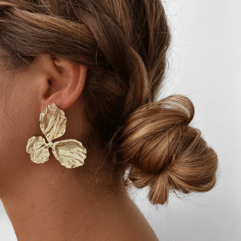 Description Boucles d’oreilles en acier inoxydable doré Finement martelée Fleur de 4,5cm de hauteur et 4,5cm de large Convient uniquement aux oreilles percées Réhaussent une tenue Boucles d’oreilles parfaites réhausser un look de fête : mariage, baptême, anniversaire ♡ Hypoallergénique, ce bijou résiste à l’eau et ne noircit pas Livraison Vos bijoux sont emballés avec […]