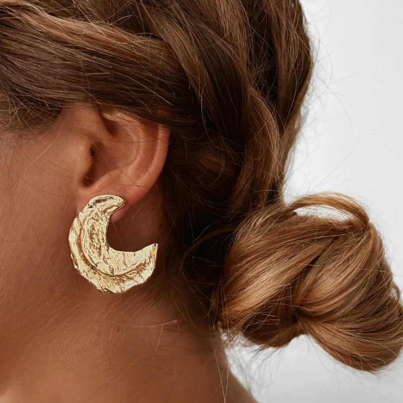 Description Boucles d’oreilles en acier inoxydable doré Lunes finement martelées 3,5cm de diamètre Convient uniquement aux oreilles percées Réhaussent une tenue Boucles d’oreilles parfaites réhausser un look de fête : mariage, baptême, anniversaire ♡ Hypoallergénique, ce bijou résiste à l’eau et ne noircit pas Livraison Vos bijoux sont emballés avec soin et amour dans un […]