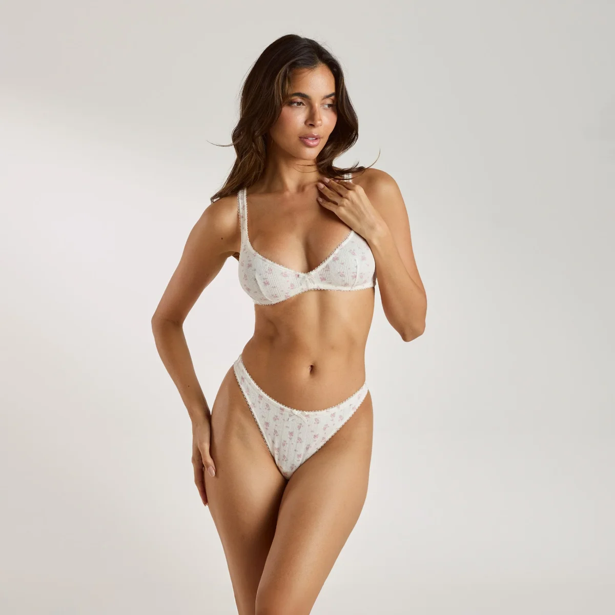 Ce bralette à la coupe décontractée est une véritable leçon de confort, sans jamais sacrifier le maintien. Avec son motif floral dessiné à la main et ses finitions en élastique picot décoratif, ce bralette du quotidien est tout sauf basique.