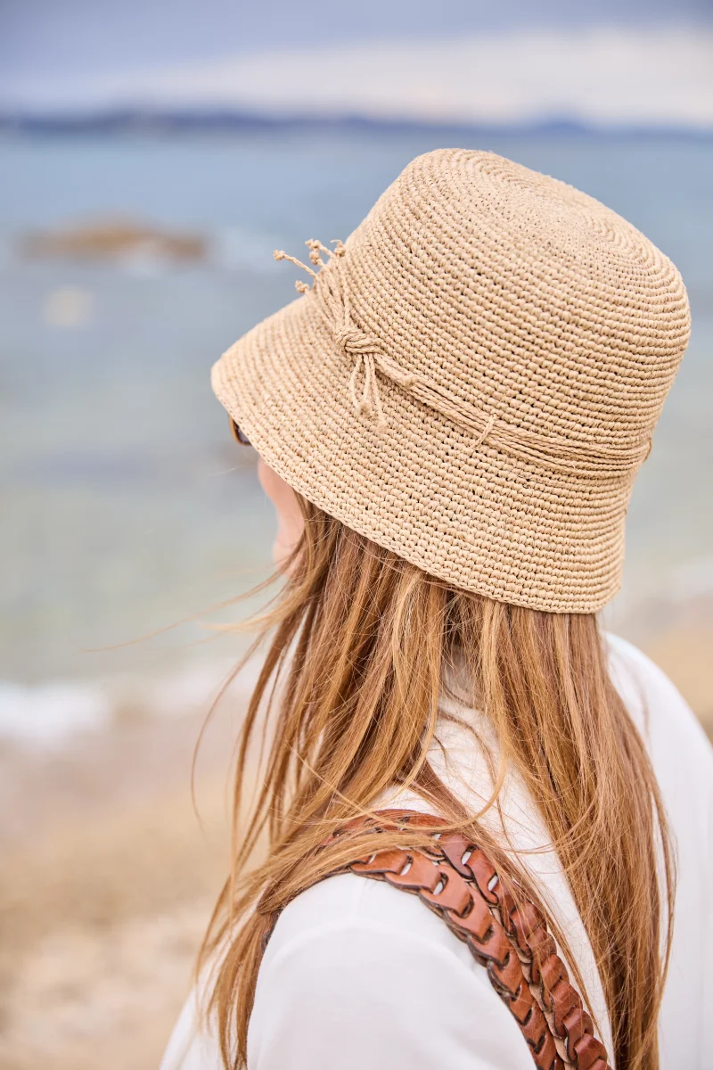 - Chapeau 100% en raphia naturel crocheté main