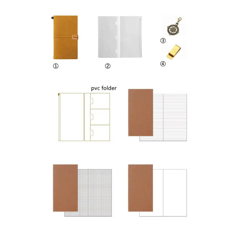 - Caractéristiques et spécificités : Carnet de 64pages (100g/7mm) fourni avec fermeture élastique + 1 de rechange, marque-page, plusieurs inserts de pages interchangeables, poche zippée en PVC de protection, un pendentif (surprise!)