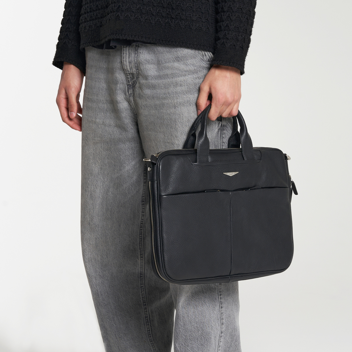 Le style est toujours important et même sur le lieu de travail, cela ne peut pas manquer. Notre maroquinerie vous offre en effet un produit dune qualité unique et dune beauté rare : la mallette de travail en cuir noir modèle District. Le cuir martelé est la caractéristique principale de ce sac à dos, qui, réalisé avec ce cuir de première qualité, savère résistant dans le temps et à lutilisation intensive quon en fait pendant les journées de travail. La couleur noire permet dassocier le sac avec nimporte quel vêtement et accessoire, pour vous sentir toujours sûr et professionnel. District peut être porté à la main, grâce à la poignée renforcée ou en bandoulière. Ce sac de travail en cuir est caractérisé par une fermeture à glissière en haut et deux autres zips latéraux qui permettent à la mallette de devenir plus large et spacieuse. À lintérieur, différentes poches et compartiments permettent dorganiser divers objets, dossiers et documents variés. Notre triangle argenté iconique gravé et les coutures faites à la main définissent le design de cet accessoire. Choisissez les produits en cuir de Fantini Pelletteria, ils vous accompagneront toute votre vie.