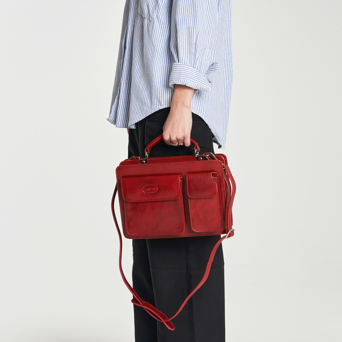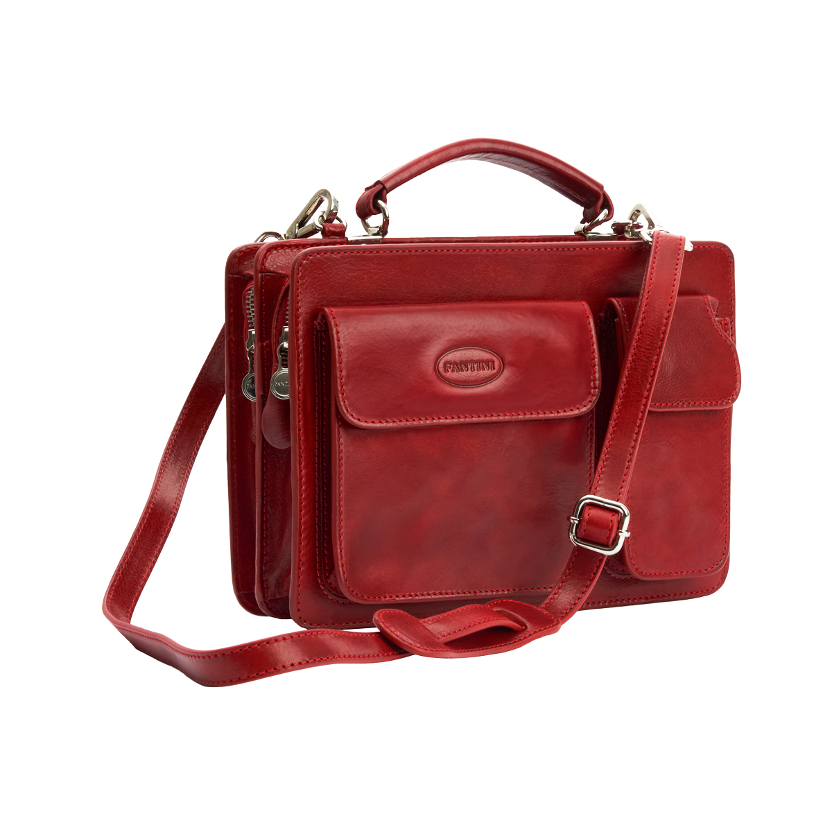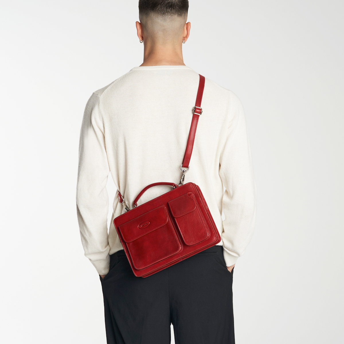 Avec son design épuré et son caractère affirmé, la Micros rouge est le porte-documents compact idéal pour ceux qui souhaitent se démarquer avec élégance même dans les contextes les plus formels. Fabriquée à la main en cuir pleine fleur teint à la main d’un vibrant rouge intense, ce sac de travail allie artisanat traditionnel et fonctionnalité contemporaine, vous accompagnant avec classe tout au long de vos journées. Malgré ses dimensions réduites, le modèle offre une excellente capacité d’organisation : deux poches avant à rabat parfaites pour ranger carnets, clés, badges ou autres objets essentiels, ainsi qu’une poche arrière dotée d’une fermeture éclair métallique pour un supplément de sécurité. L’intérieur revêtu du tissu personnalisé Fantini est divisé en deux grands compartiments zippés, comprend une poche intérieure fermée par zip, trois porte-stylos en cuir cousus à la main et un espace dédié pour votre téléphone portable. Chaque détail de la Micros Rouge a été conçu pour garantir durabilité et praticité : la bandoulière en cuir est ajustable et amovible afin que vous puissiez le porter confortablement sur l’épaule ou le transporter grâce à sa solide poignée supérieure. Les finitions métalliques en bronze vieilli apportent une touche vintage à cet accessoire déjà très marquant. Idéal tant pour les femmes que pour les hommes recherchant un accessoire compact mais distinctif, ce porte-documents flamboyant s’avère parfait pour ceux évoluant dans des environnements créatifs ou désireux d’afficher leur sens du style sans passer inaperçus.