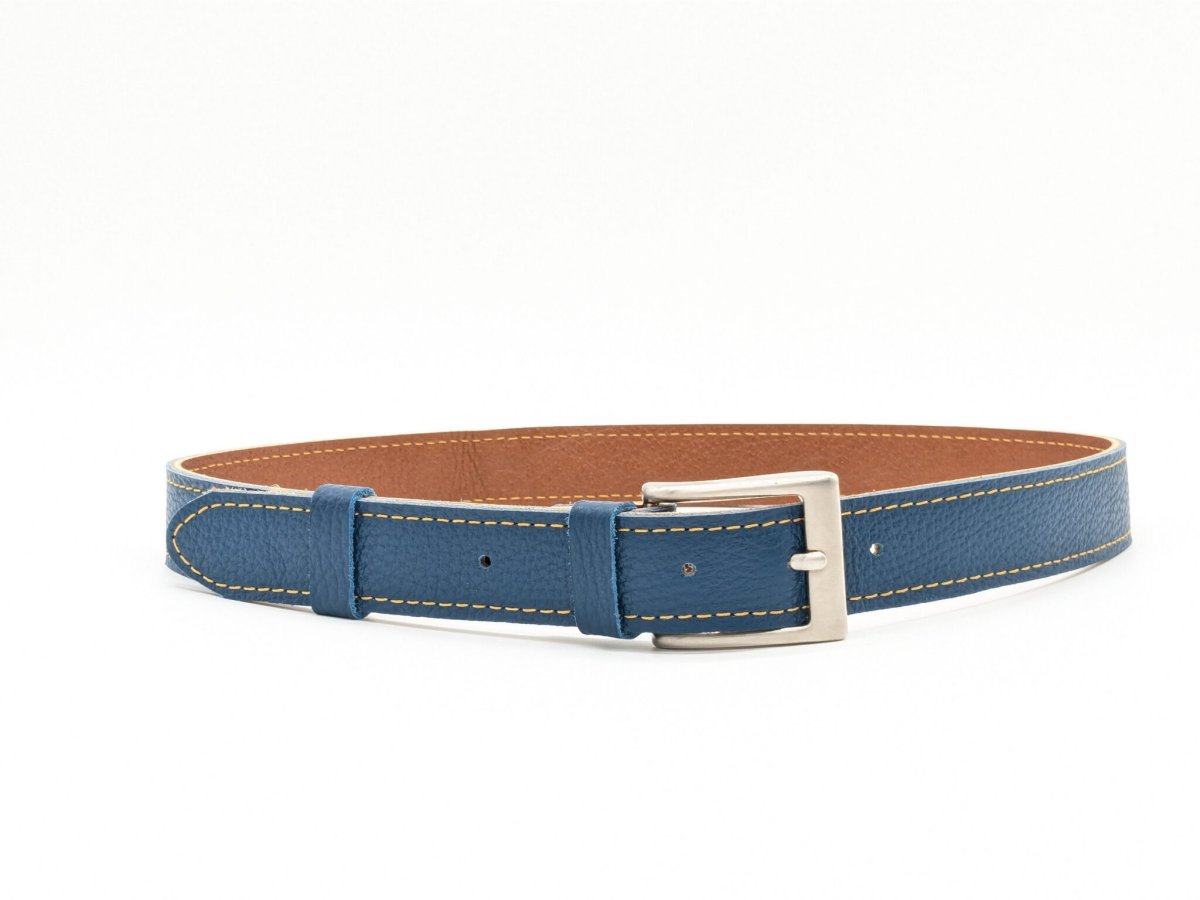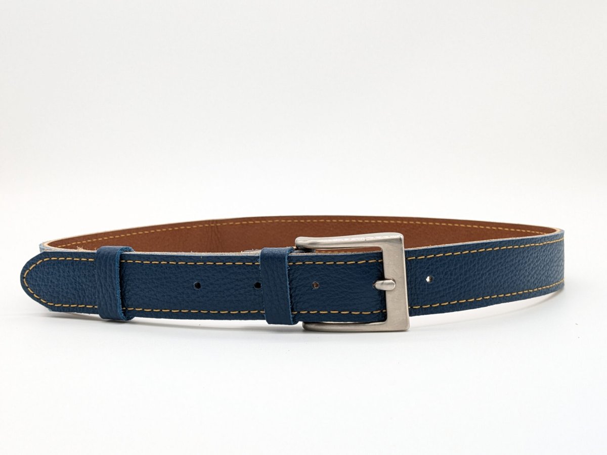 Ceinture cuir grainé bleu marine en cuir de vachette.