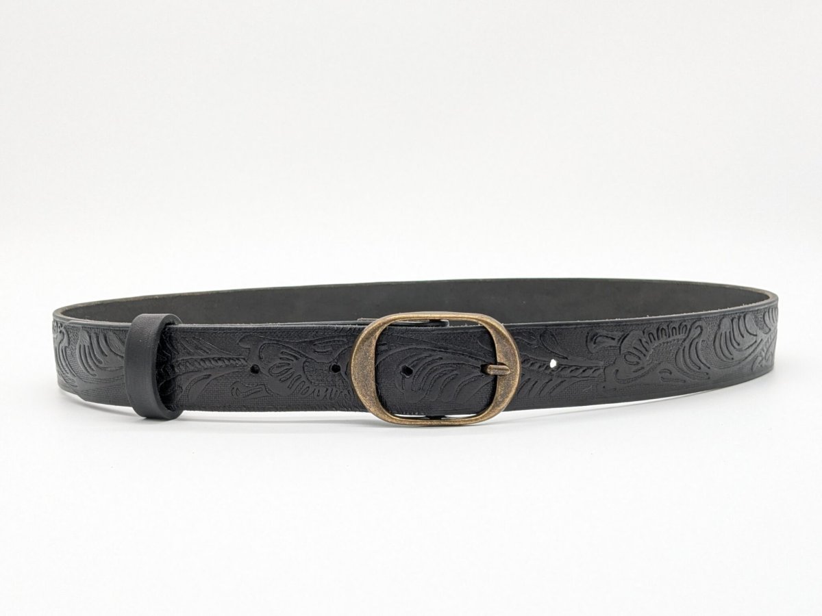 Cette ceinture en cuir fait partie de nos ceintures haut de gamme, abacarrée sur les côtés et teintée en noir sur les tranches.