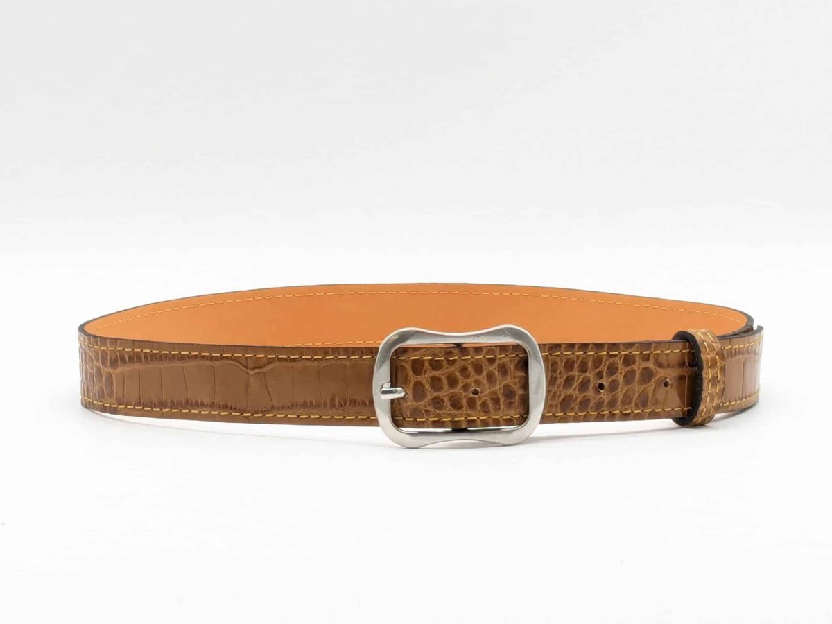 Cette ceinture haut de gamme, élégante, fait 2.8 cm de large et 3.3 mm d’épaisseur. Elle a été doublée cuir, imprimée croco et piquée. Très souple et agréable à porter, elle conviendra à différentes tenues.