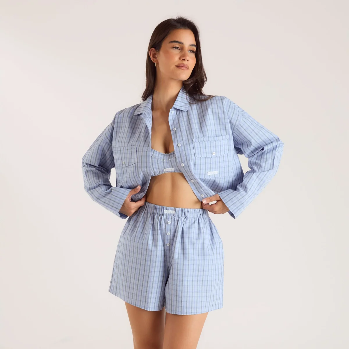 Chemise courte Col classique Manches droites avec ourlets repliés, sans poignets Fermeture boutonnée Poches poitrine avec fermeture à bouton Boutons gravés du logo Écusson tissé avec logo sur la poche gauche Empiècement au dos avec pli d’aisance