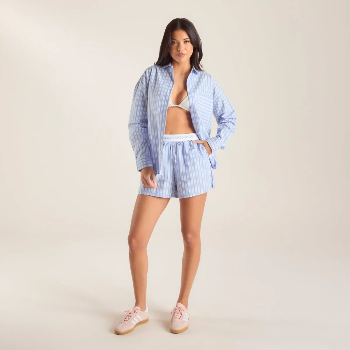 Style oversize à rayures Tissu léger et doux Chemise à manches longues avec fermeture à bouton et poche Boutons gravés du logo Lounge Parfaite pour les expressos matinaux, les soirées en plein air et tout ce qui se trouve entre les deux, cette chemise à rayures est tout ce dont vous avez besoin cet été.