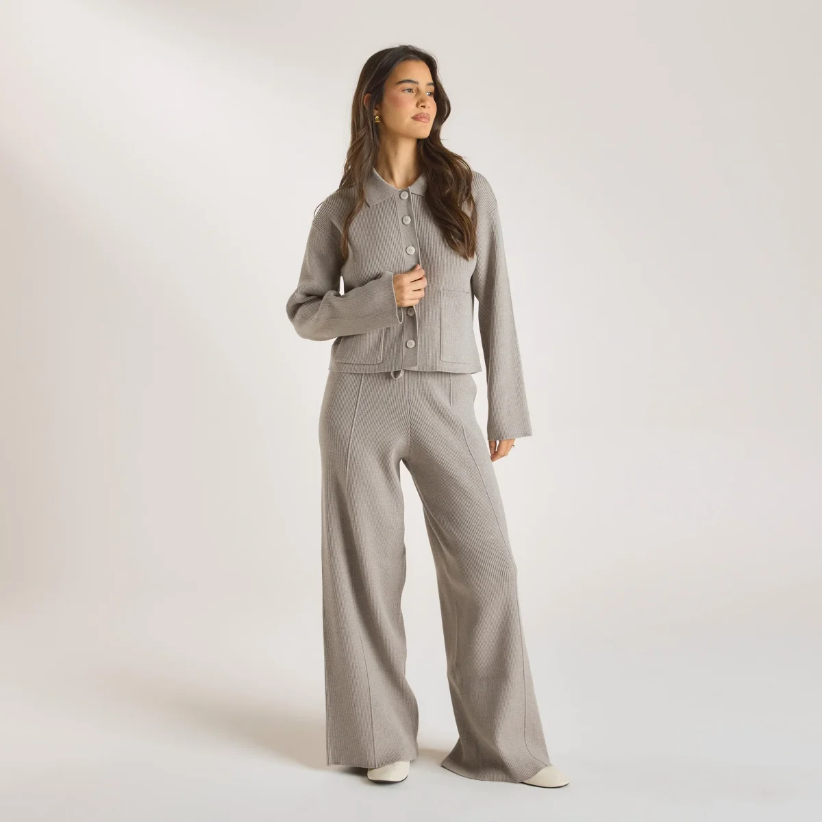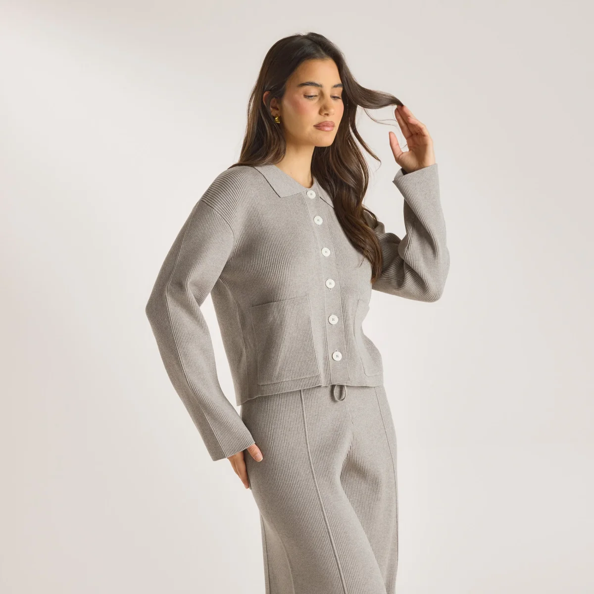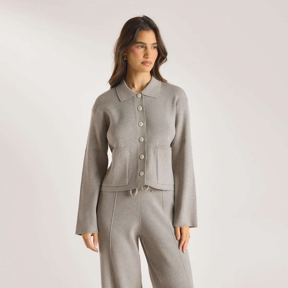 Chemise Oversize en Tricot – Gris Chaud