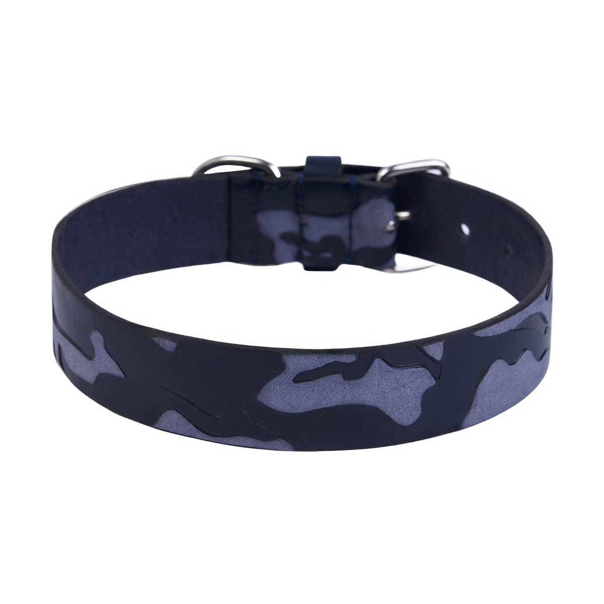 Confort et camouflage urbain : collier pour chiens en cuir bleu fait main