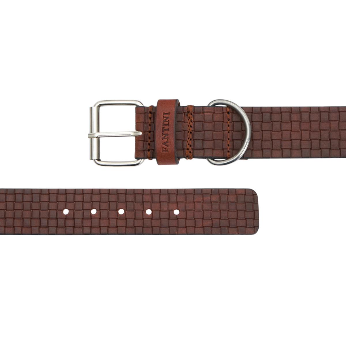 Le collier pour chiens Juno est un accessoire à la fois élégant et durable, conçu pour offrir confort et style à votre fidèle compagnon. Fabriqué artisanalement en Italie avec du cuir véritable, il se distingue par sa finition tressée qui allie esthétique et solidité. Sa largeur de 3,5 cm le rend adapté aux chiens de taille moyenne à grande, garantissant une prise sûre sans sacrifier le bien-être. Équipé d’une boucle en métal chromé résistante et d’un solide anneau pour la laisse, Juno est pensé pour durer dans le temps tout en assurant sécurité lors de chaque promenade. Le détail gravé « FANTINI » sur la sangle en cuir met en avant l’authenticité ainsi que l’excellence du produit Made in Italy. Idéal pour ceux qui recherchent un collier haut de gamme, fonctionnel avec un style inimitable.