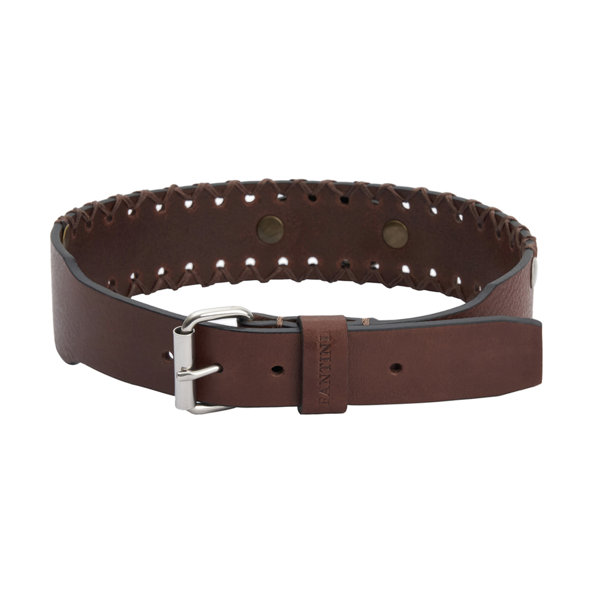 Le collier Titano en cuir couleur marron foncé est le choix idéal pour ceux qui recherchent un accessoire au style affirmé mais élégant, capable de se démarquer avec subtilité. Fabriqué artisanalement en Italie à partir de cuir de haute qualité, il est orné d’une couture tressée le long des bords, mettant en valeur l’artisanat du produit tout en renforçant sa durabilité. Avec une largeur de 4 cm, Titano offre un ajustement robuste et stable, parfait pour les chiens de taille moyenne à grande. La boucle en acier inoxydable et l’anneau en D assurent sécurité, solidité et longévité même lors des promenades les plus dynamiques. La teinte marron foncé apporte une note chaleureuse et raffinée au design, le rendant adapté à toutes les occasions. Titano n’est pas qu’un simple collier : c’est un emblème de force, d’élégance et de qualité Made in Italy, conçu pour accompagner votre chien avec caractère et fiabilité.