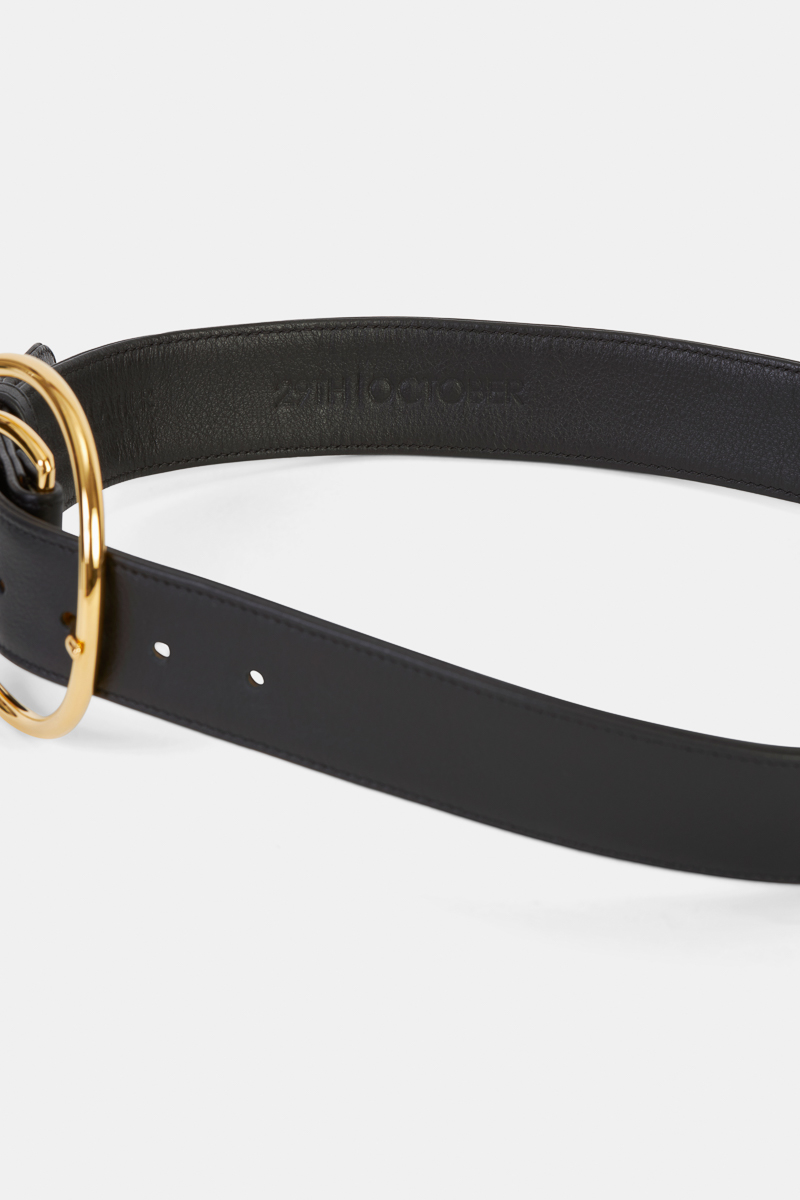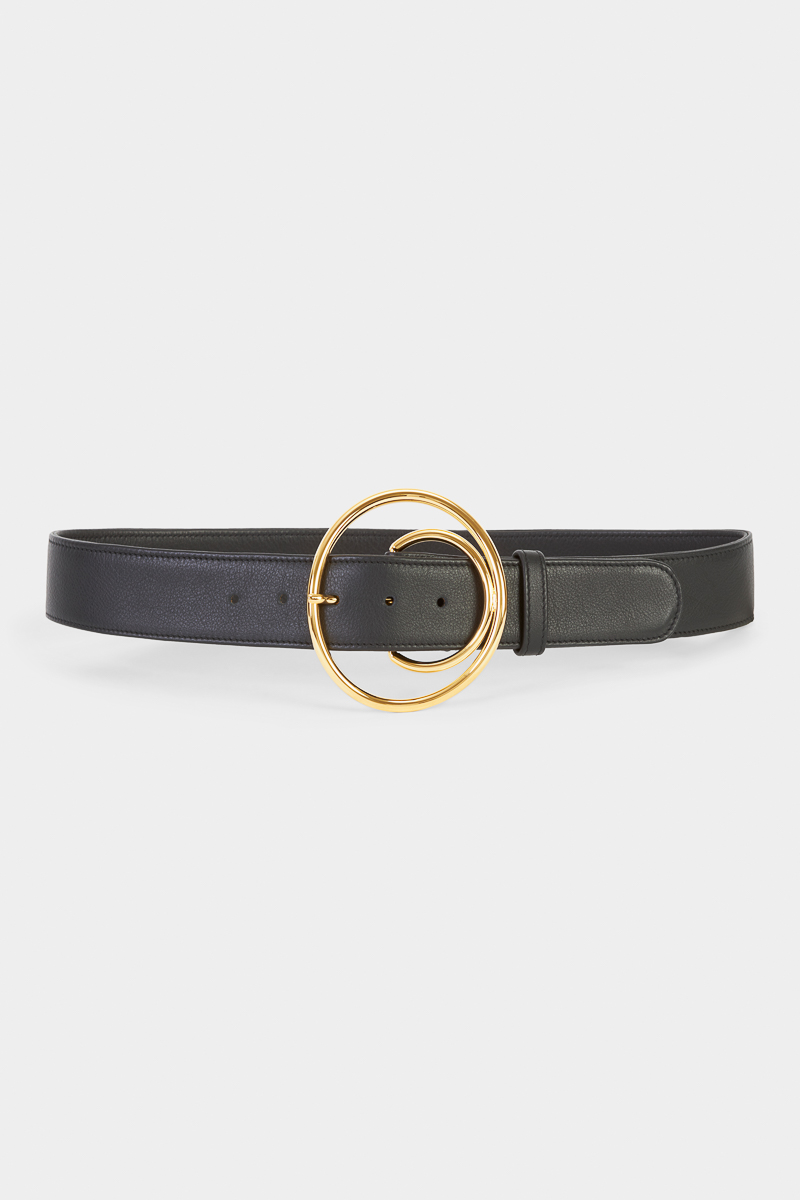 Ceinture noire en cuir de veau lisse d’Italie