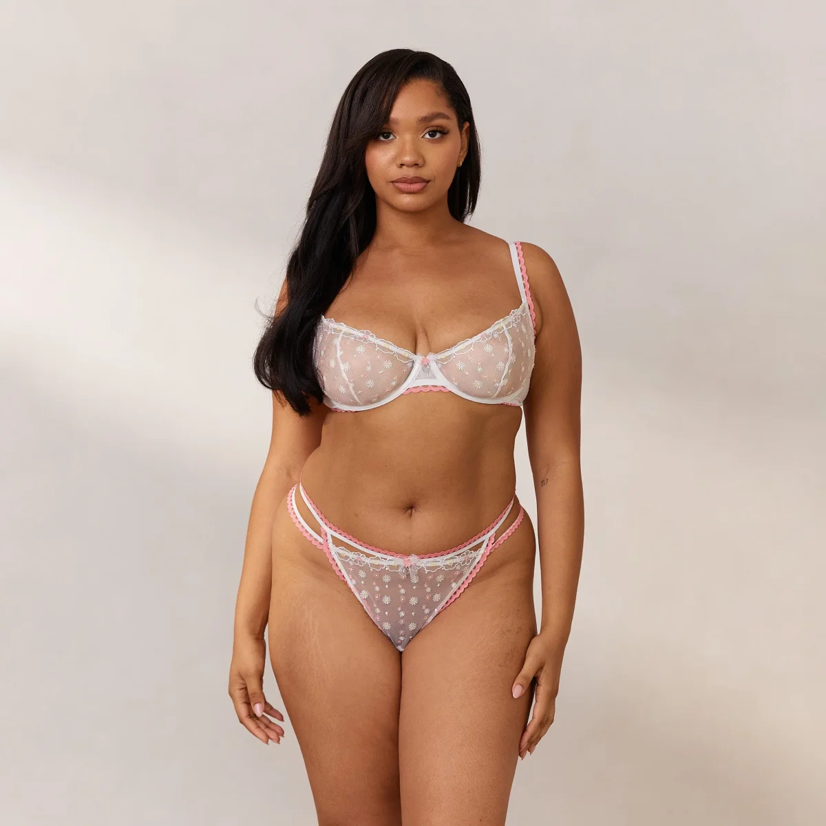 Daisy Embroidered Balcony Soutien-Gorge – Blanc