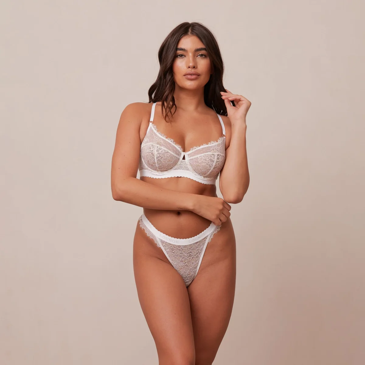 Soutien-gorge à armatures, non rembourré Dentelle frangée avec filament métallique brillant Agrafes en guise d’attaches Bretelles réglables avec gaufrage Lounge Éléments métalliques Or rosé gravés Lounge Bandes avec gaufrage Lounge 39% Polyamide recyclé, 32% Polyamide, 17% Élasthanne, 12% Fibre métallisée Tu as envie de craquer pour Lounge ? Notre Ensemble Desire Balcony vient superbement compléter […]