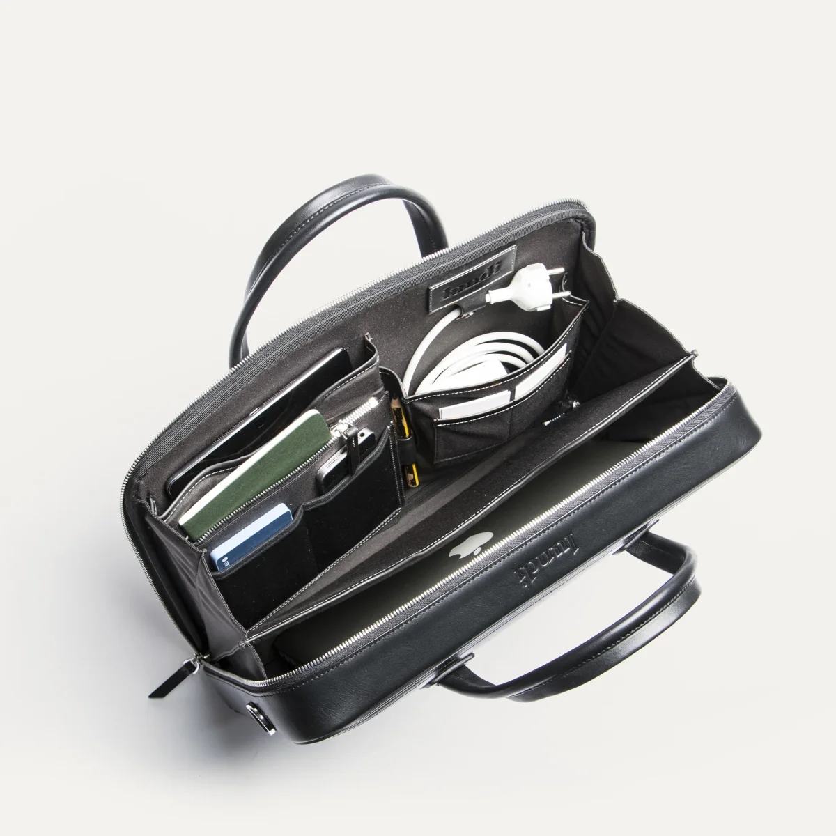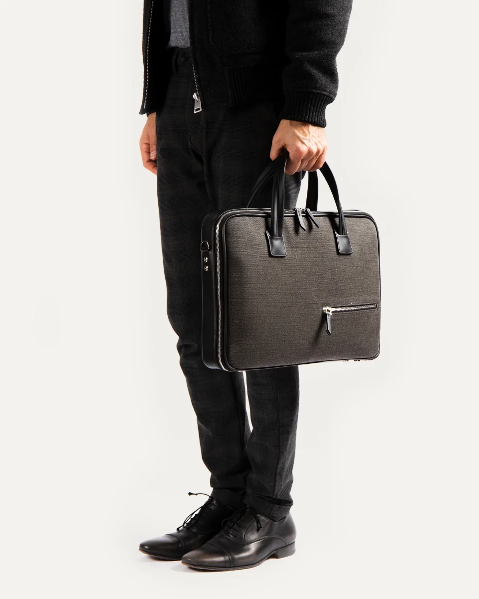 La ligne Diego associe notre cuir au tannage végétal à une toile de coton huilée. Une composition élégante qui accentue l’aspect décontracté de ce sac business. La construction de ce sac reste identique à nos modèles réalisés entièrement en cuir. Nos fermetures éclair en métal sont fournies par YKK, un fabricant japonais qui propose une des meilleures qualités de zips au monde. La garanti d’un produit durable, qui vous accompagnera pendant de longues années.