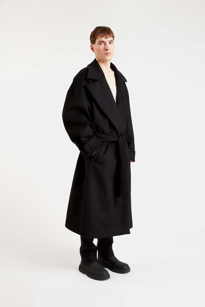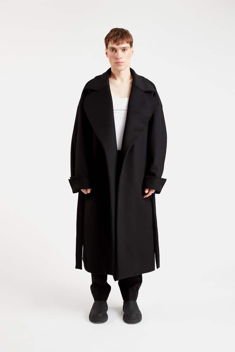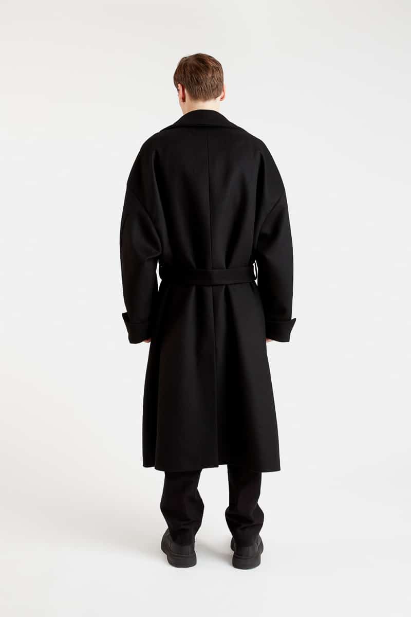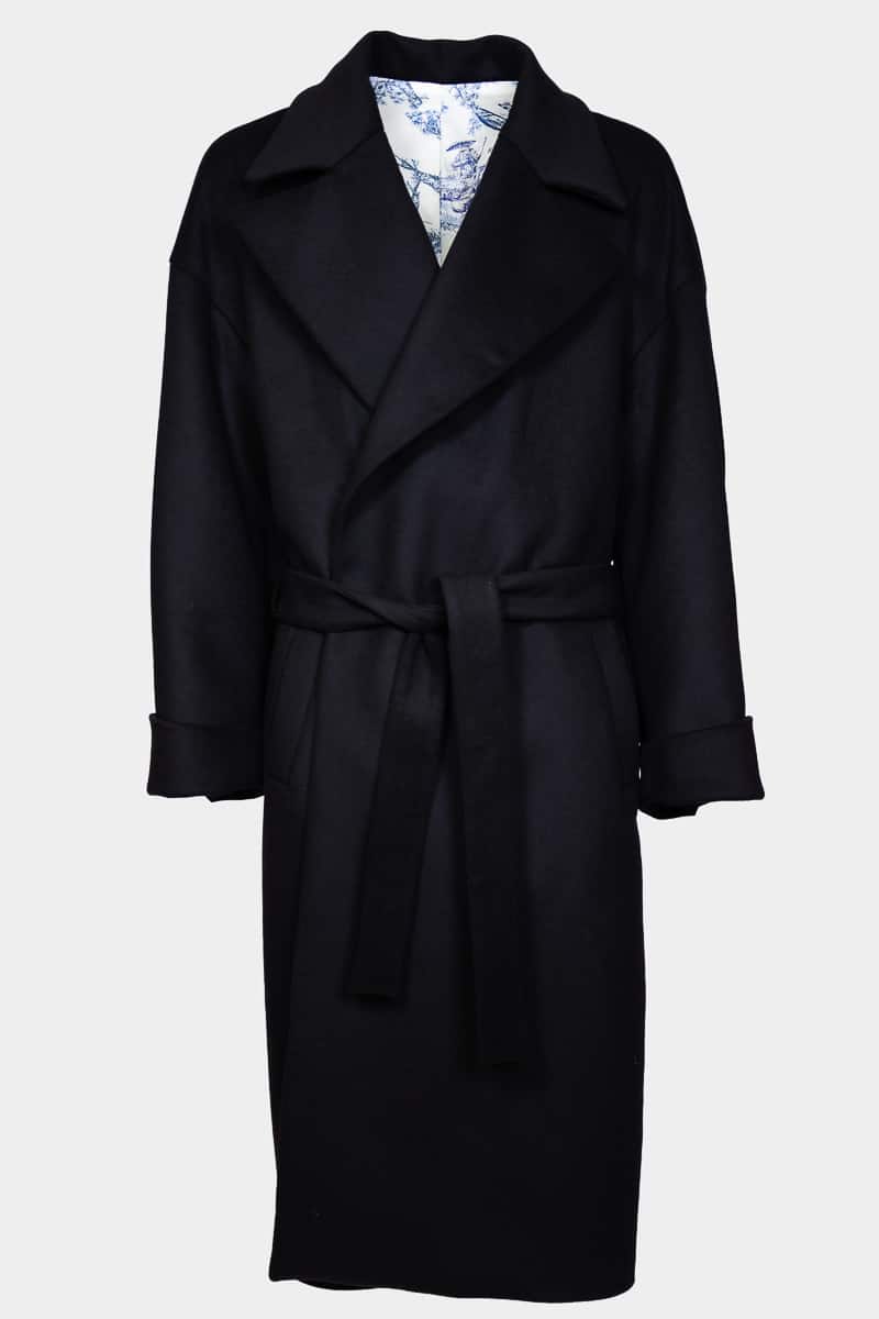 Ce long manteau super oversize style kimono confectionné en pure laine noire, présente une coupe ample, une fermeture croisée avec ceinture, un grand col revers, une doublure imprimée à motifs paysage japonais, deux poches latérales, deux poches intérieures et une fente d’aisance dans le bas du dos. Le modèle Fuji allie à la fois un style épuré, raffiné et moderne. Ce manteau chaud et confortable se distingue par son volume très ample et s’associera à toutes vos tenues d’hiver.