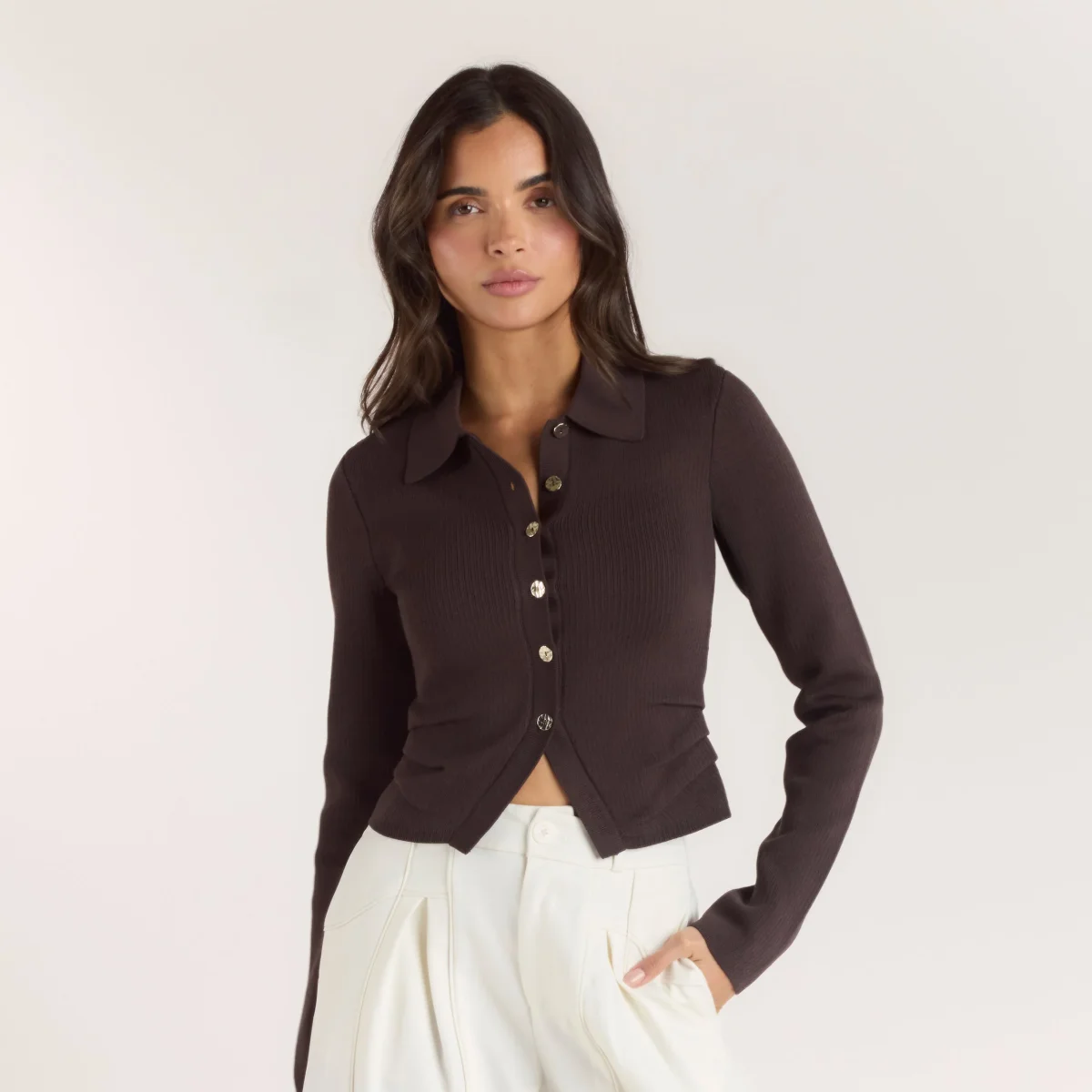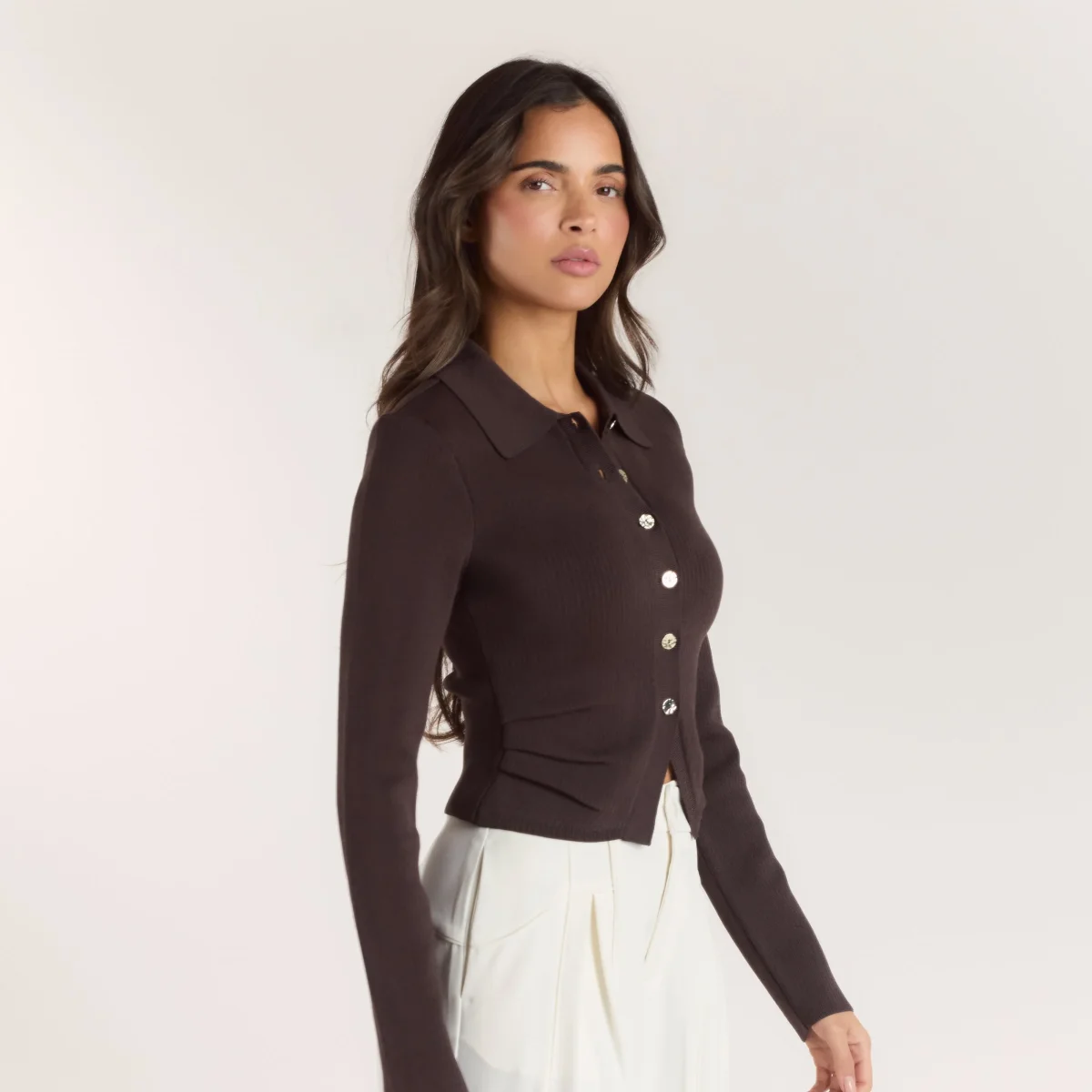 Ce gilet en maille côtelée est une pièce indispensable de votre garde-robe de mi-saison. Sa coupe simple est rehaussée avec élégance par des fermetures métalliques martelées et des détails plissés resserrés de chaque côté.