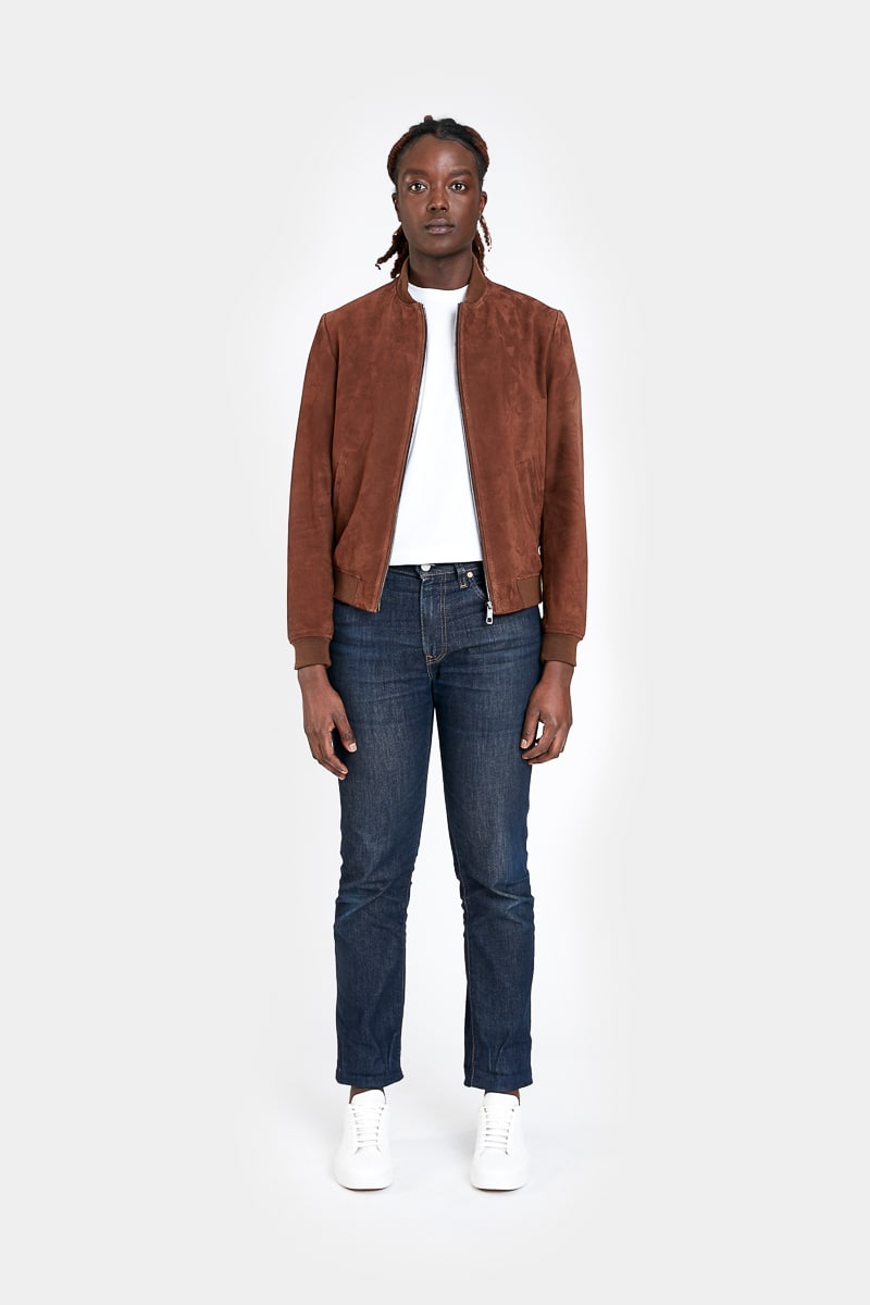 Ce blouson léger et élégant en daim chèvre velours couleur noisette présente un col et des bas de manches en tricot, deux poches latérales zippées, deux poches intérieures et une fermeture centrale éclair. L’intérieur en tissu chemise présente une finition soignée. Le modèle Hugo propose un style élégant et moderne. Ce blouson est un indispensable de la garde-robe masculine.