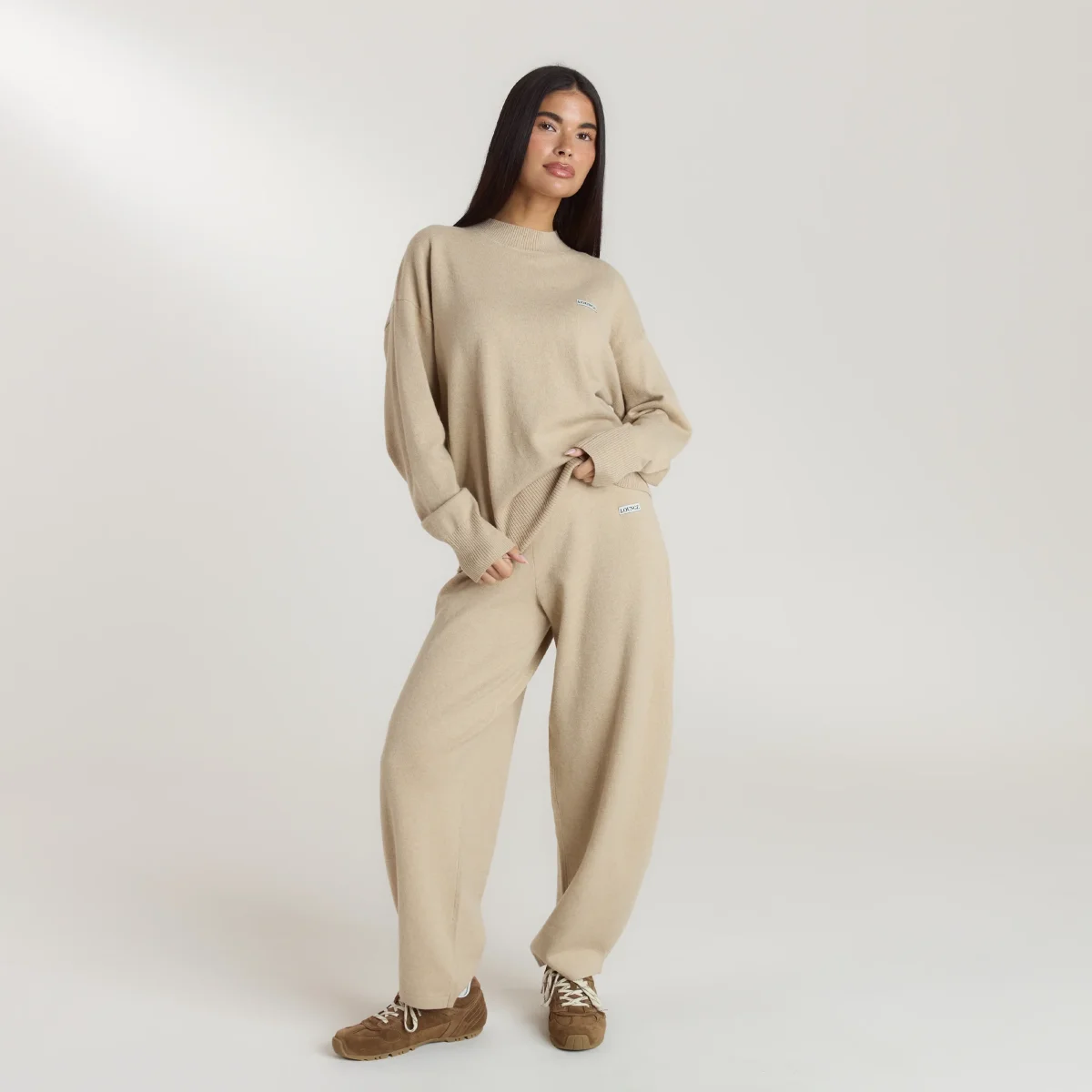 Pantalon de jogging en maille coupe « barrel » Taille élastiquée côtelée et fine pour plus de confort Étiquette tissée logotée à l’avant Bas de jambe côtelés et ajustés Style fluide avec structure souple