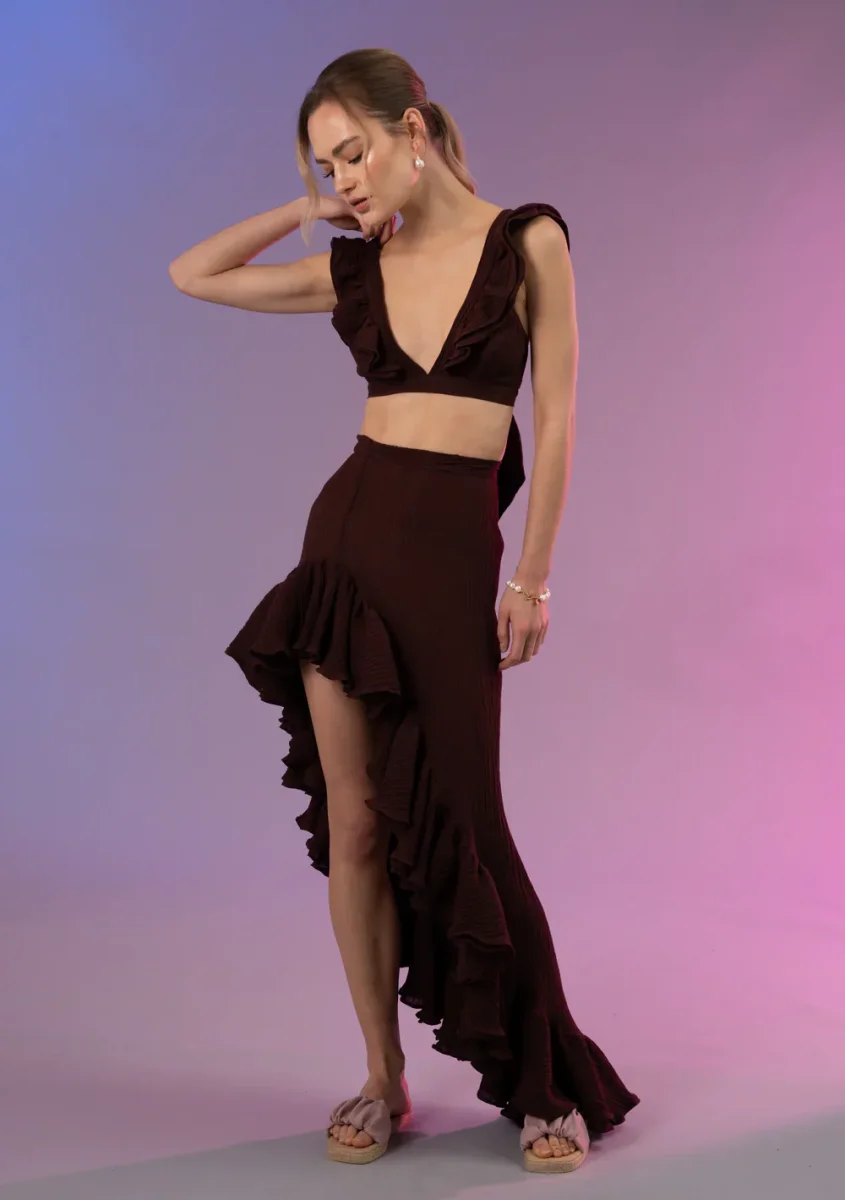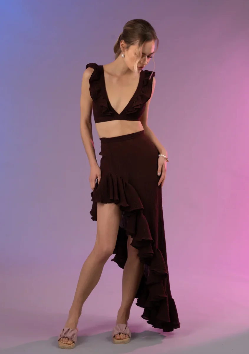 La jupe Demi joue avec les angles et les mouvements grâce à sa coupe asymétrique modulable : à vous de choisir si vous portez la fente sur la jambe ou sur le côté, pour varier les envies et les occasions. Sa taille partiellement élastiquée garantit un maintien confortable, tandis que sa double doublure assure une tenue parfaite.