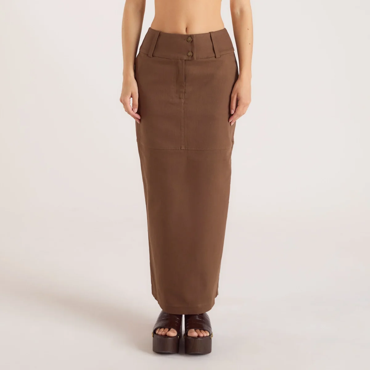 Jupe Maxi Tissé à Double Boutonnage – Chocolat