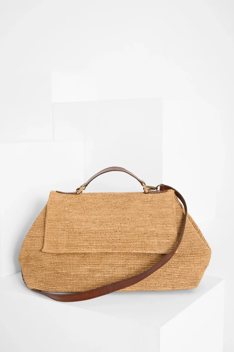 - Matières : 100% de Raphia naturel, ce sac doublé en coton bio allie souplesse et solidité d’une matière naturelle et durable. La poignée et l’anse amovibles sont en cuir de zébu tanné selon un procédé végétal
