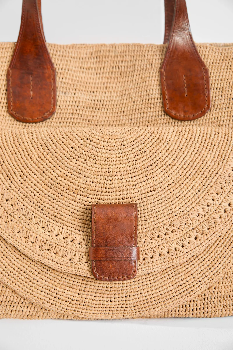 - Matières : 100% en Raphia naturel doublé en coton bio, ce sac allie souplesse et solidité d’une matière naturelle et durable. Les deux poignées sont en cuir de zébu tanné selon un procédé végétal.