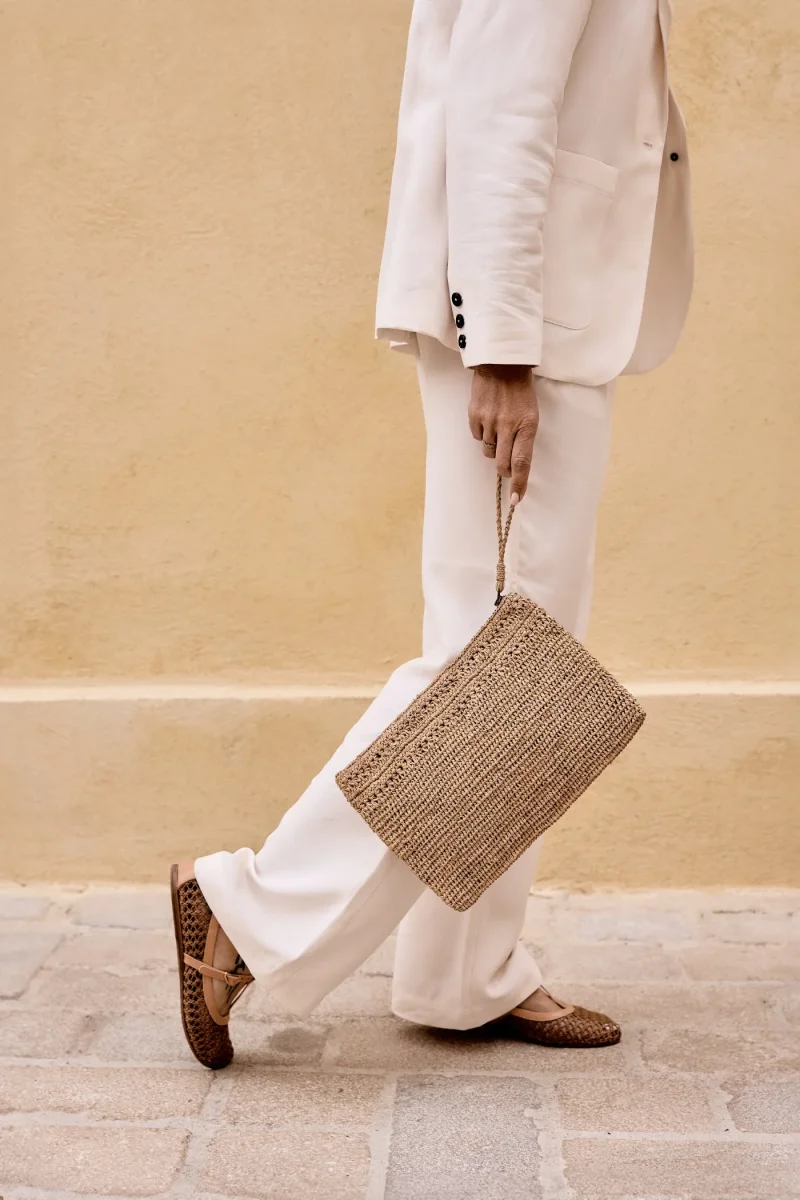 - Matières : 100% en Raphia naturel, cette pochette doublée en coton bio allie souplesse et solidité d’une matière naturelle et durable.
