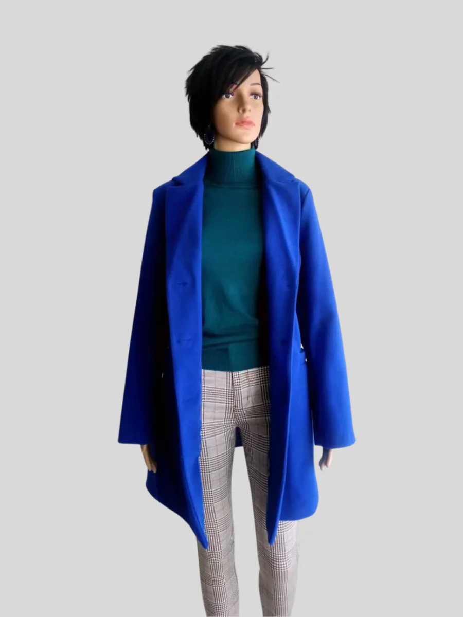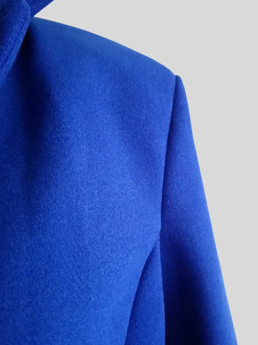 Optez pour le BLEU ÉLECTRIQUE pour un look audacieux et tendance grâce à notre manteau BLEU ÉLECTRIQUE au toucher doux, avec son col tailleur ouvert stylé. Son design élégant et sa couleur vibrante vous feront rayonner à n’importe quelle occasion.