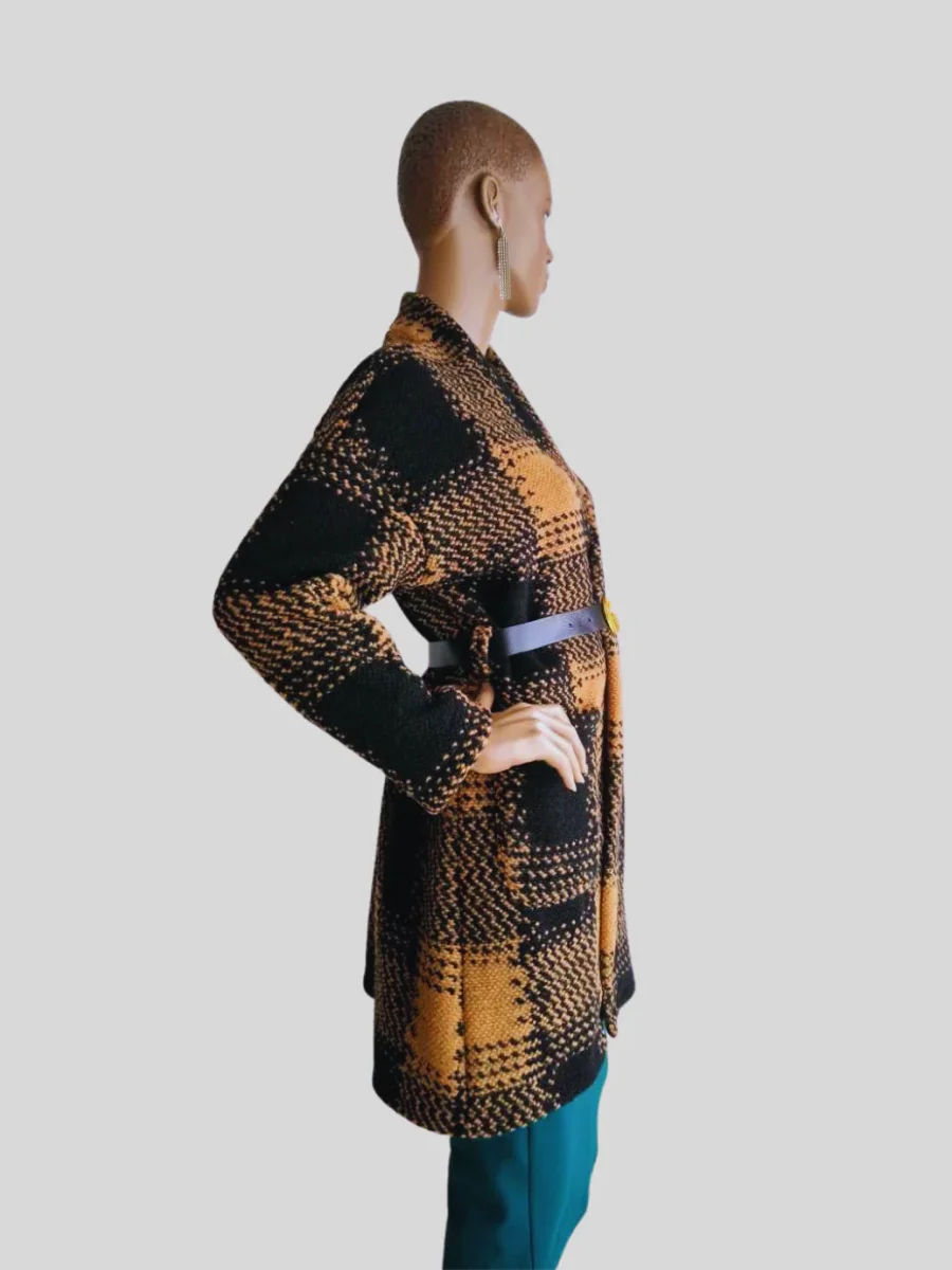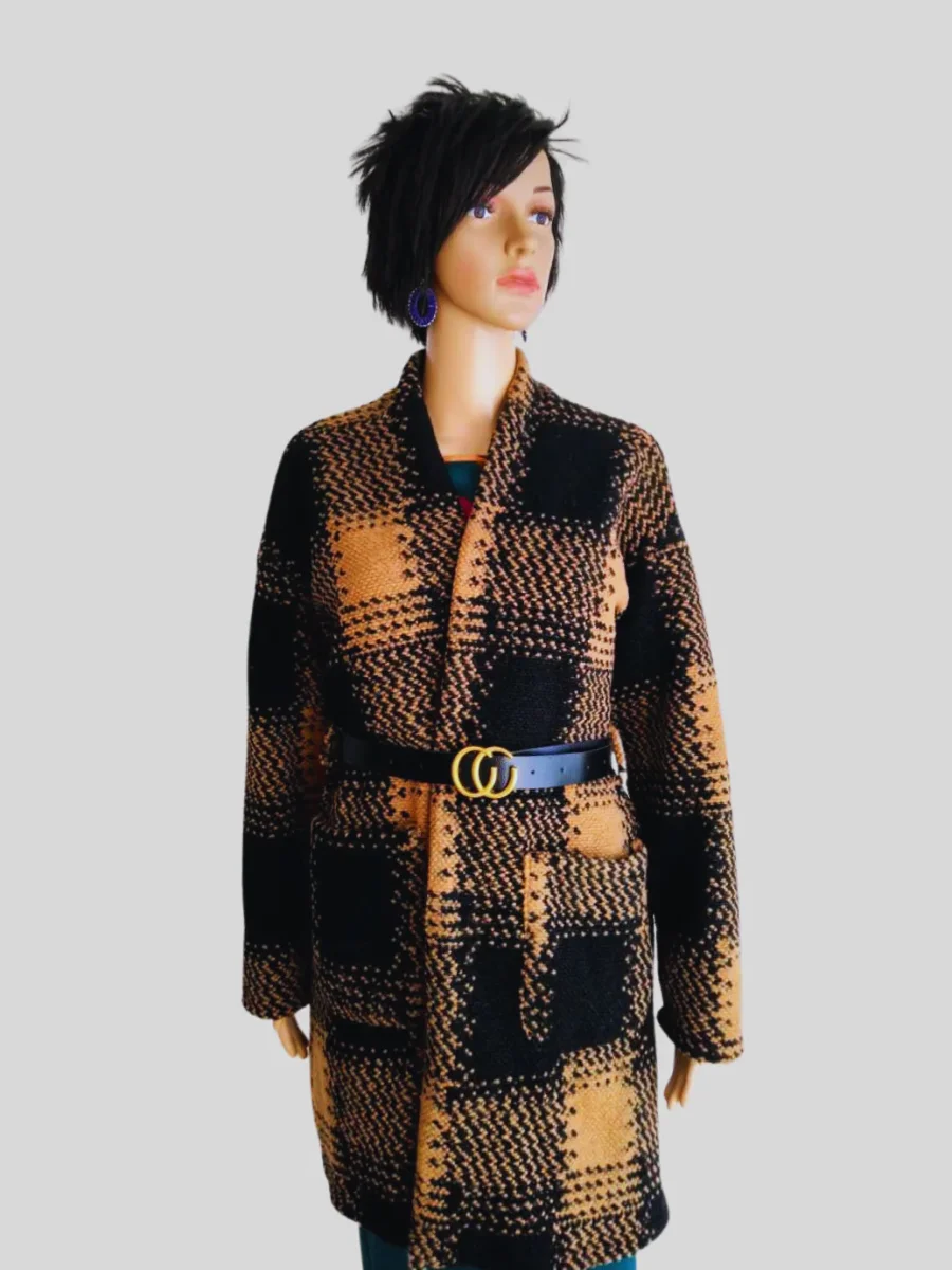 Notre manteau MARRON à carreaux en laine avec ceinture à boucle vous apportera chaleur et style, une pièce intemporelle et élégante pour habiller votre silhouette. Offrez-vous une allure chic et unique.