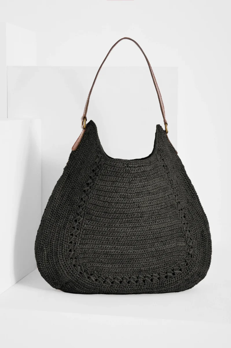 Dimensions : Sac hobo raphia de taille moyenne (Hauteur : 33cm Largeur : 39cm) Longueur anses : 41cm
