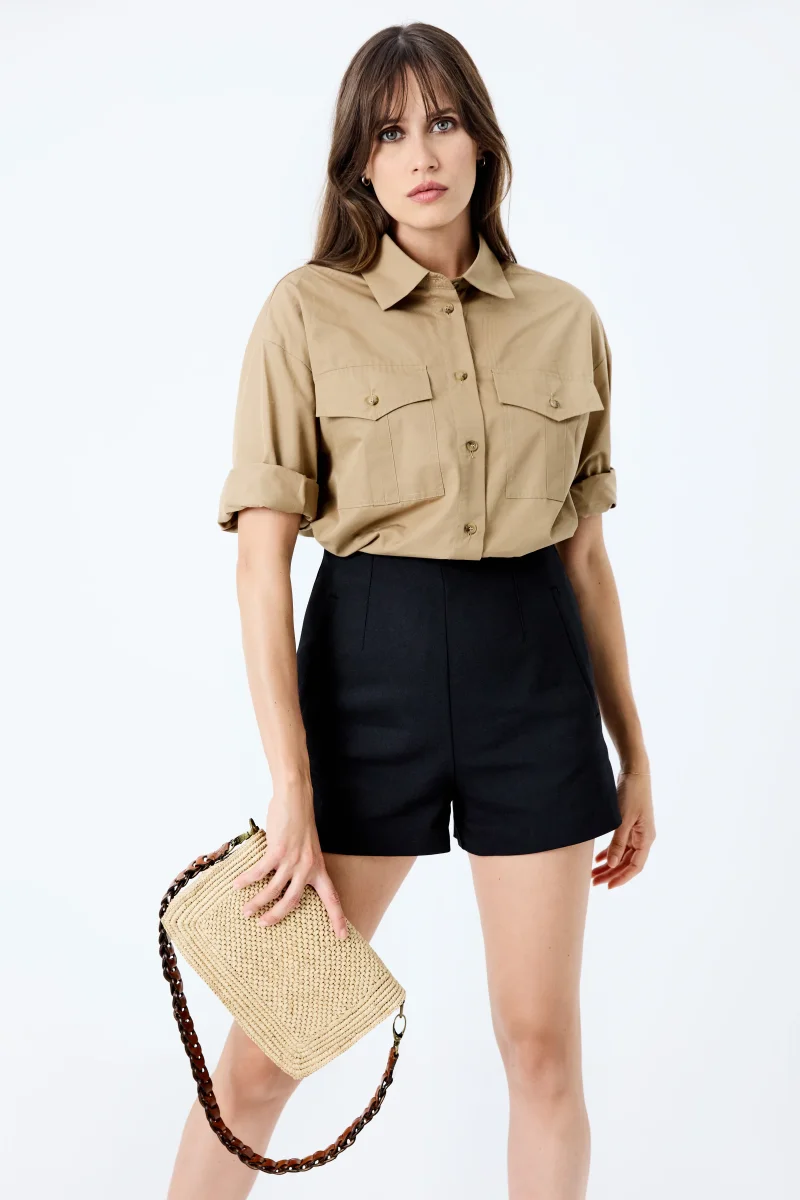 Caractéristiques : Fermeture par deux boutons pression aimantés. Deux bandoulières amovibles de longueurs différentes, l’une en cuir tressé en cascade et l’autre en cuir plat, pour une plus grande polyvalence de style et d’utilisation. Le détail en plus, une poche plaquée pour ranger vos cartes.