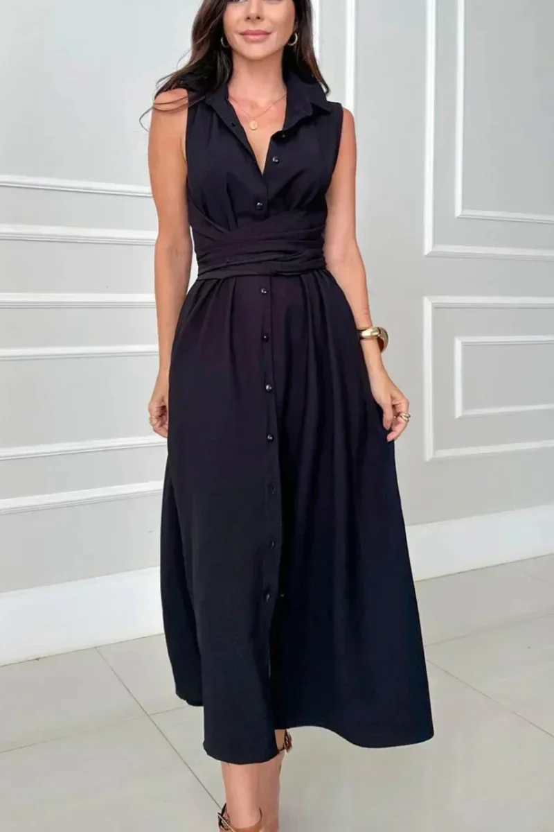 - Col chemise structuré, sans manches pour une allure légère.