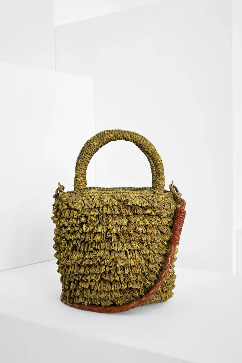 Matières : 100% en Raphia naturel. La lanière amovible du sac est en cuir de zébu tressé tanné selon un procédé végétal.