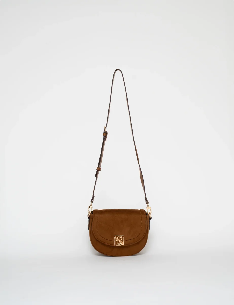 Un format demi-lune aux lignes épurées, décliné ici en suédine.