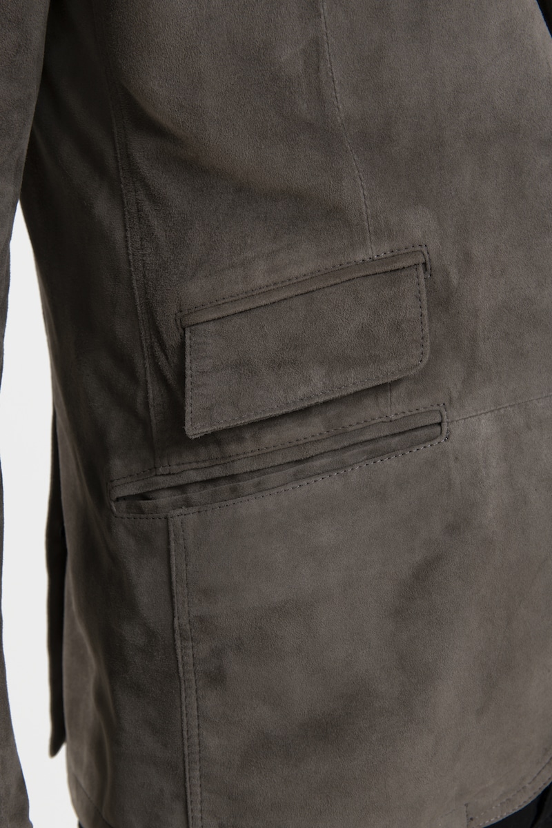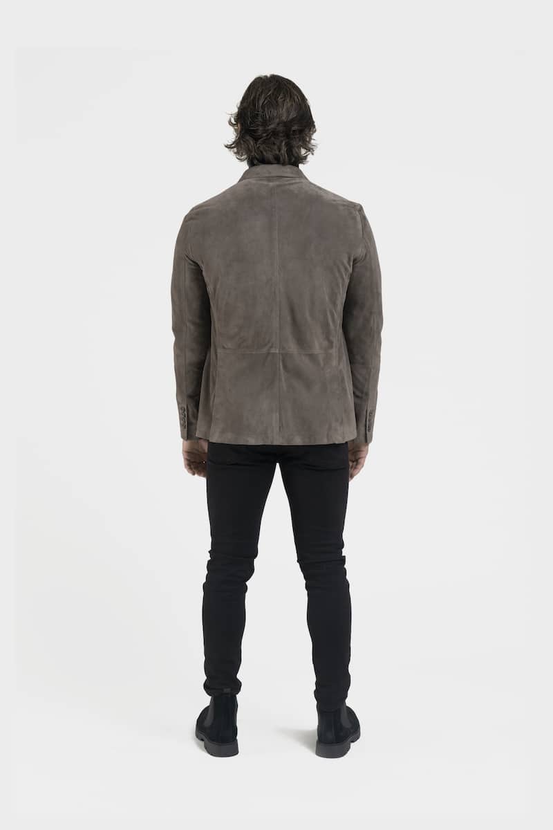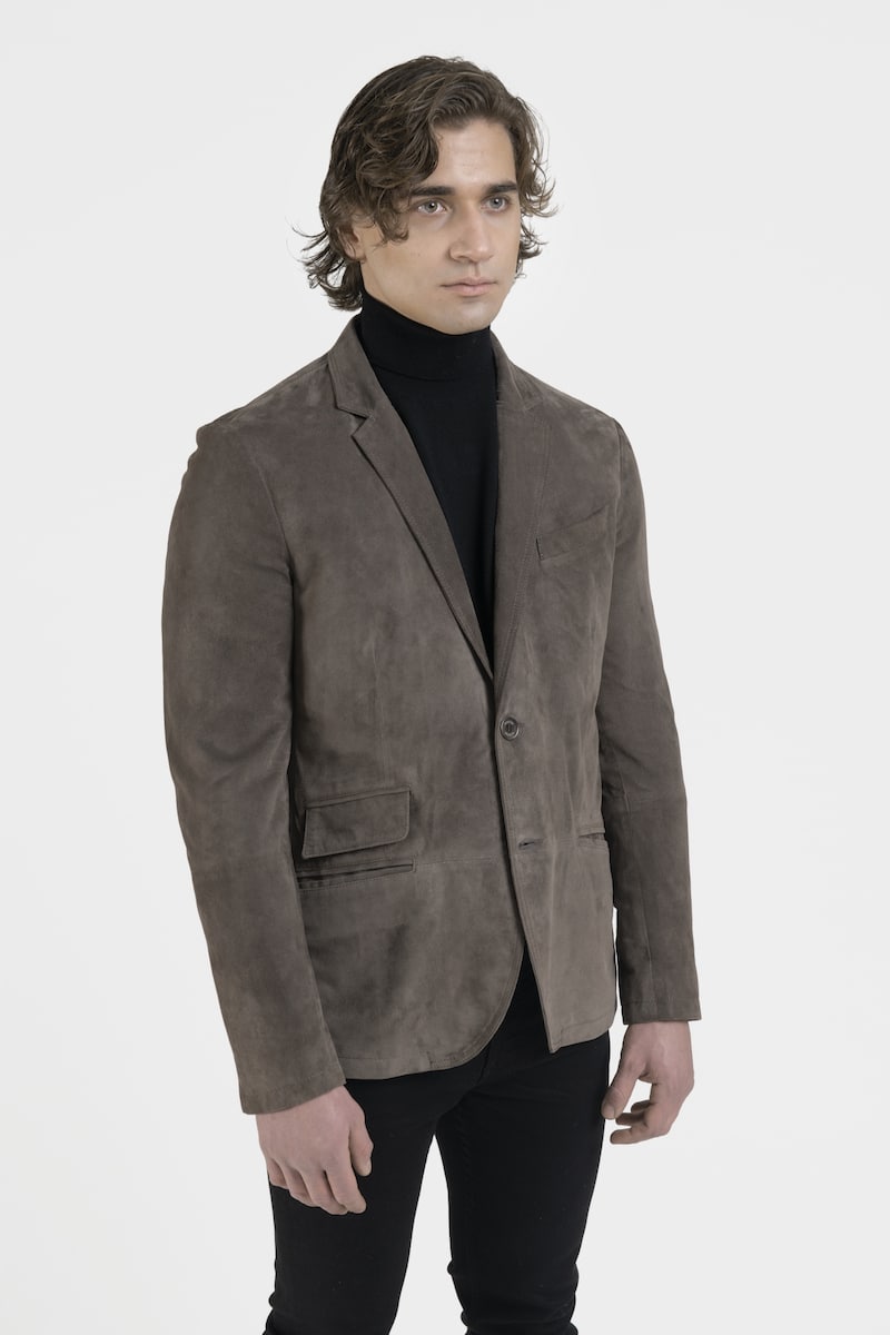 Ce blazer coupe droite en daim chèvre velours couleur gris présente un col revers, une poche poitrine, trois poches avec rabats et une fermeture centrale avec boutons. Le modèle Noris propose un style élégant et raffiné. Le blazer en daim reste un incontournable de la garde-robe masculine.