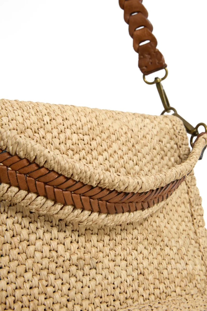 • Sac bi-matière : raphia naturel et cuir de zébu