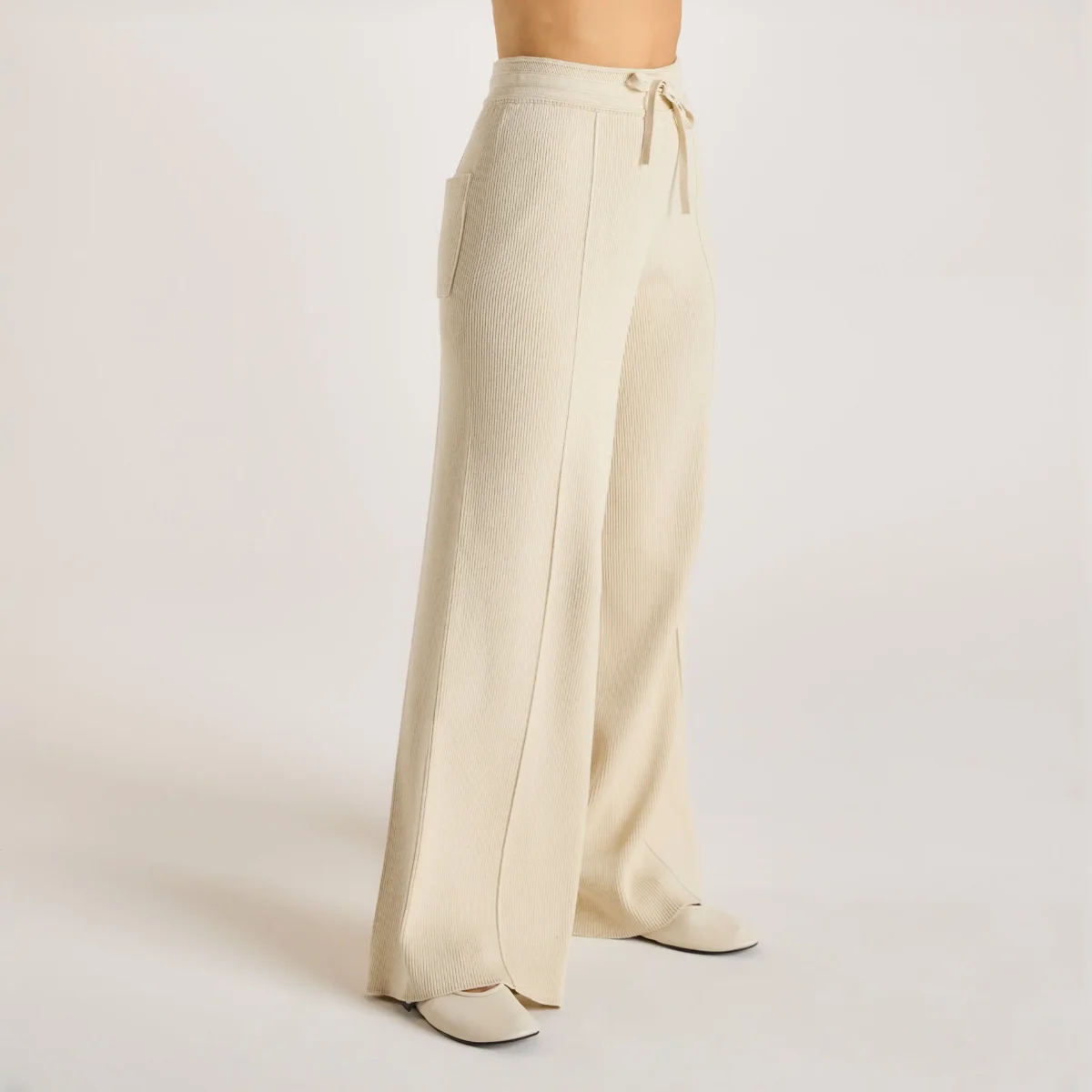 - Pantalon en tricot ultra-large avec taille à cordon de serrage