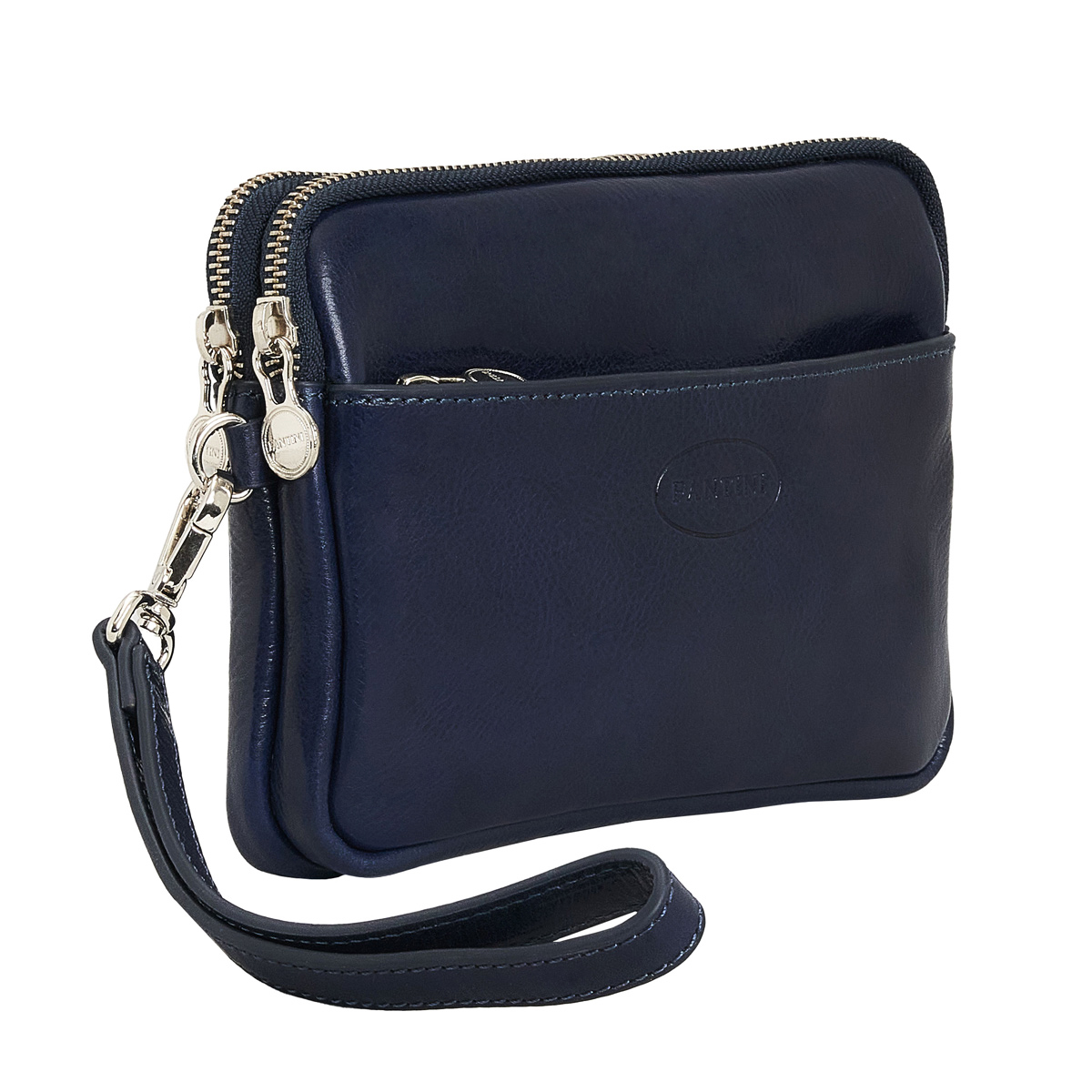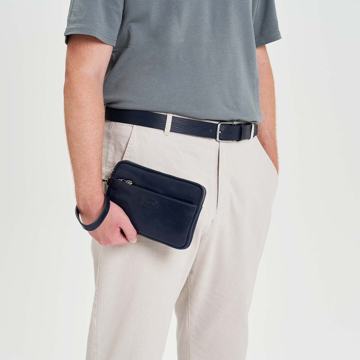 Pochette Element en cuir bleu, accessoire unisexe élégant et polyvalent