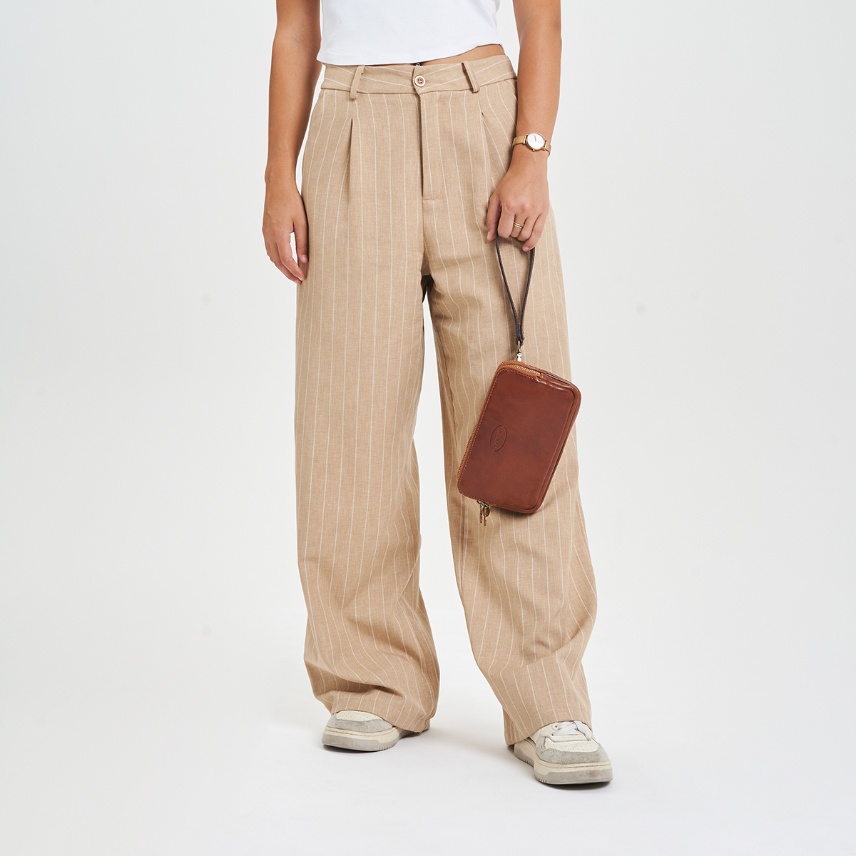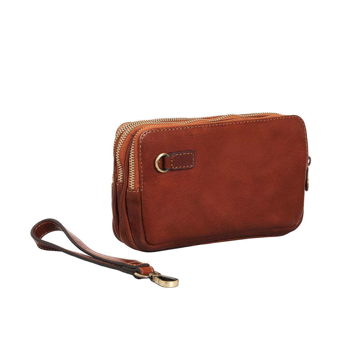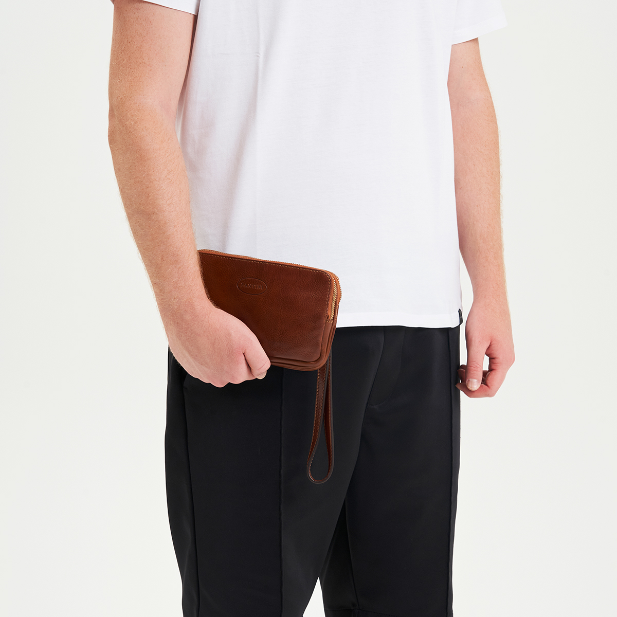 Trail, la pochette unisexe en cuir couleur miel avec un grand espace et des détails raffinés